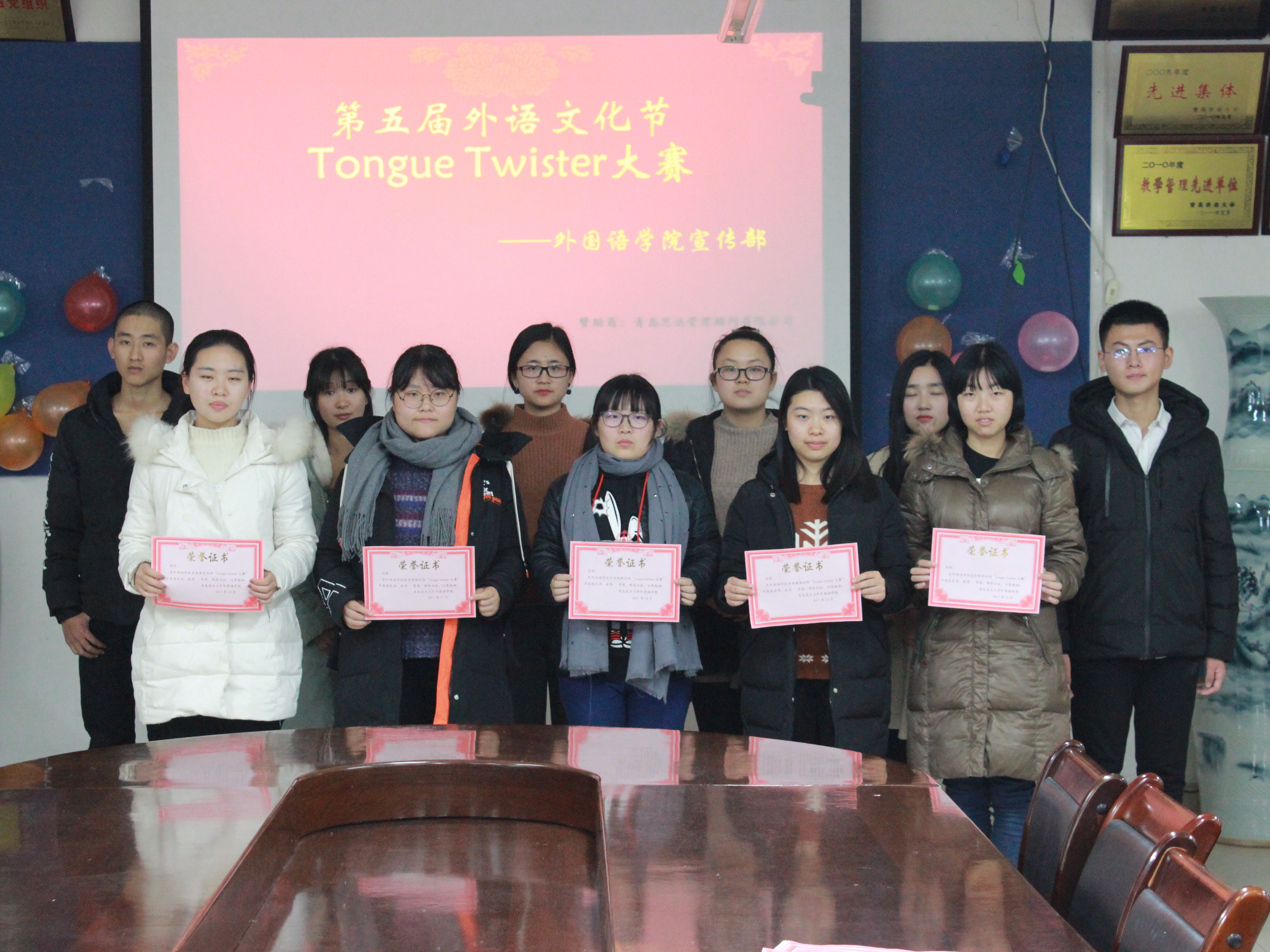 12月2日,外国语学院于文经楼会议室举办“Tongue Twister”大赛,本次大赛由学生会宣传部主办,17级同学参加。