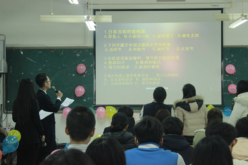 12月3日,外国语学院学生会创新创业部于文经楼C214举办“玩转外语”中外文化知识竞赛,全院共有15、16级四十多名同学参加。