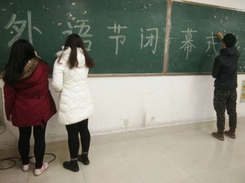12月15日,外国语学院于文经楼c214进行第四届外语节闭幕式审选活动,外国语学院辅导员刘璐、文艺部部长孙凡以及女生部部长钱雪共同参与节目审选,现场为节目质量把关,并提出指导意见。
