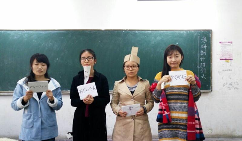 同学们分组在台前表演,十分入戏。想象力丰富的他们有的拿出围巾作为“天人的披肩”;有的自行利用废旧纸盒制作出“天皇王冠”;有的用口罩捂住脸演出“狸猫变脸”时的场景,甚至有的人为了表现出“海龟驼人”的效果背着另外一名同学足足绕讲台来回数圈……参演者认真细心的准备赢得在座同学的阵阵掌声和此起彼伏的欢声笑语。