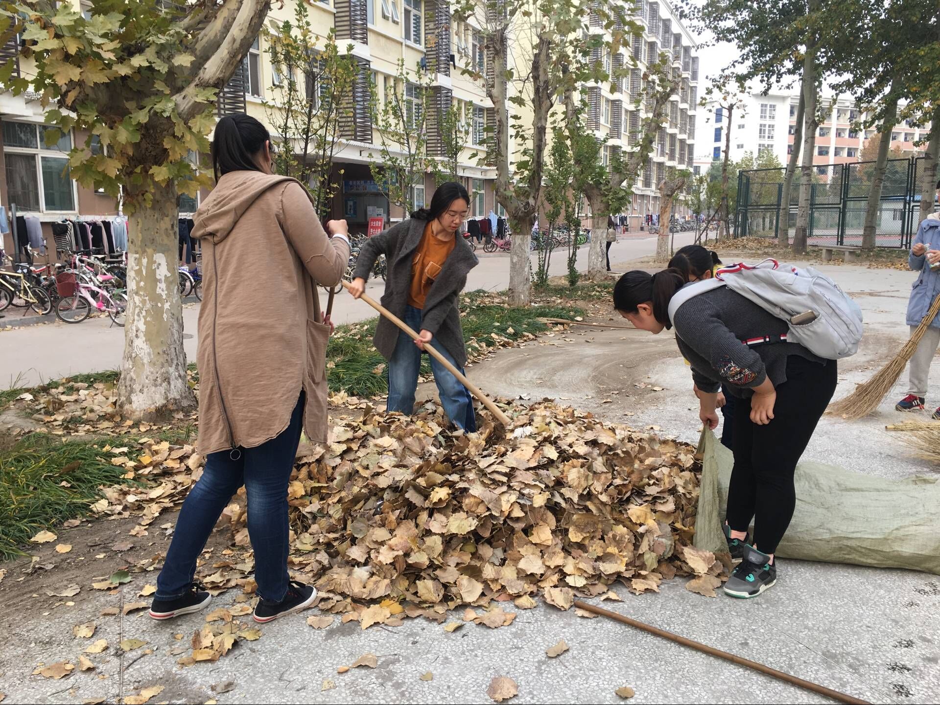 近几年“德智体美劳”中,“劳”被无意识的淡化忽略。积极的开展劳动实践课,有利于提高学生的劳动意识。在室外的课堂上,侯建鑫指导全体成员如何更有效更有趣的做劳动,并提供了良好的方法。各个班委成员充分发挥示范带头和先锋模范作用,全班同学积极参与,不畏辛劳拎起麻袋,拿起工具清扫树叶。即使同学们的身上都是灰尘,但在劳动过程中气氛轻松愉快,短短一个时便高效地完成了学院布置的任务,将校园环境进一步美化。