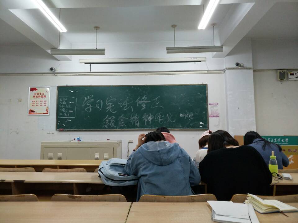 4月1日,外国语学院朝鲜语1701班在教学区集中学习了关于2018年修改宪法的相关规定。