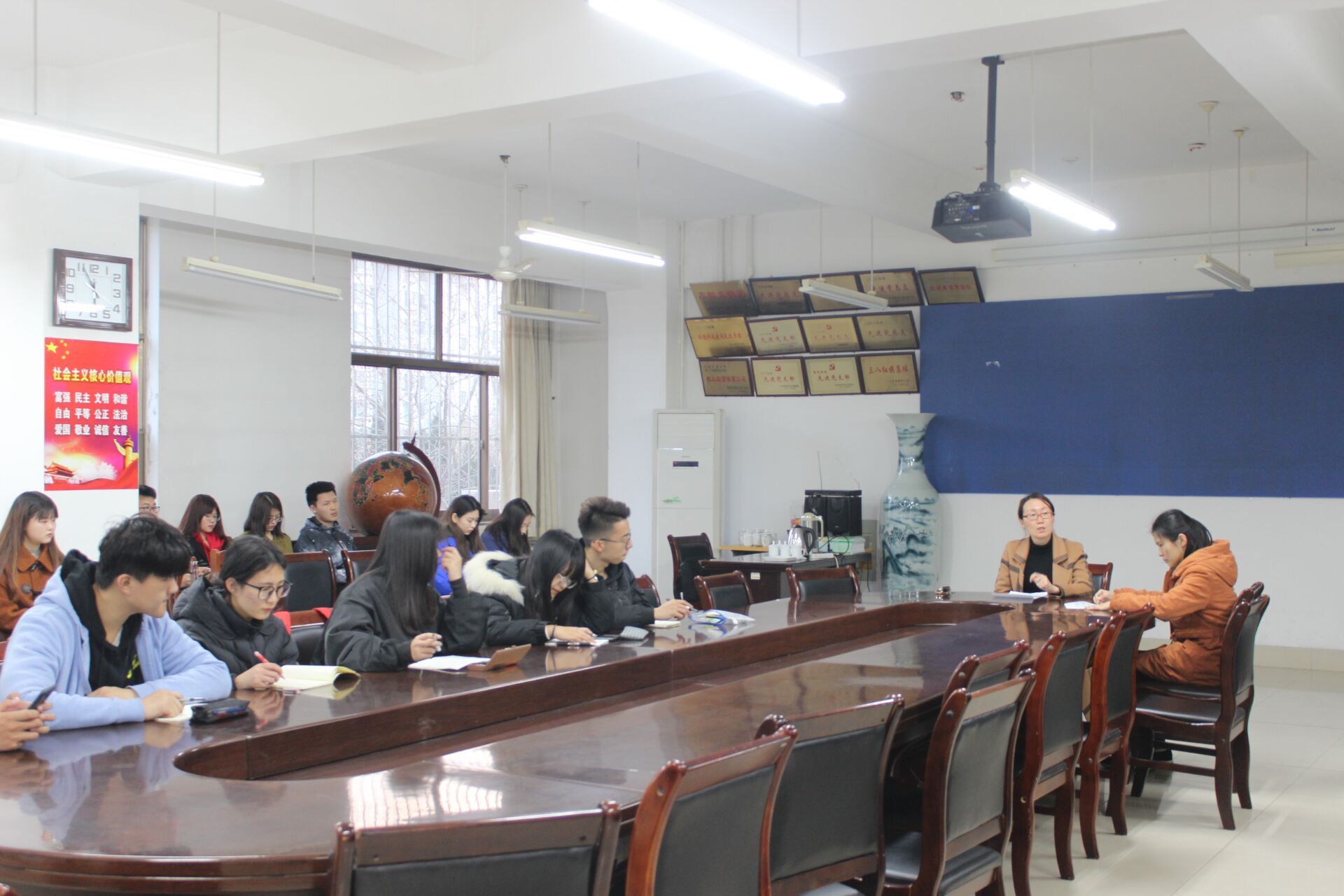 3月19日,青岛农业大学外国语学院于文经楼会议室召开本年度贫困生复评工作专题会议。会议由团委书记嵇安奕主持,各班班长书记与会。