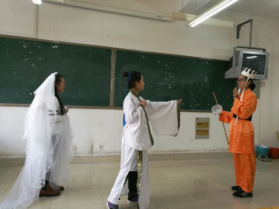 话剧表演中的每一处细节无不体现着同学们的细心与重视。此次精彩的英语话剧表演更离不开郭飞老师的细心指导。这种既轻松又富有乐趣的语言实习课,不仅增强了同学们的语言实践能力,而且使大家进一步领略到了英语文化的魅力。