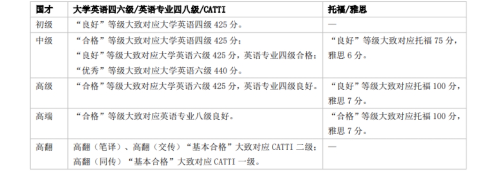 国才考试与国内外英语考试的对标