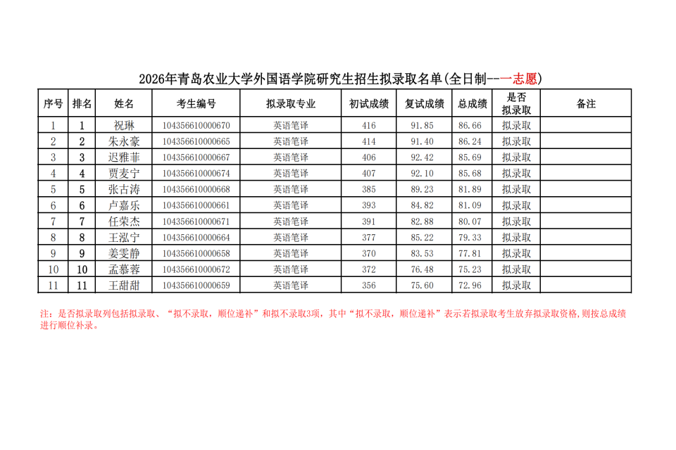 2026年青岛农业大学外国语学院研究生招生拟录取名单(全日制--一志愿).pdf