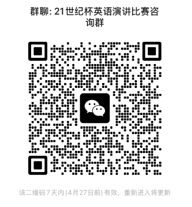 竞赛交流微信群:21世纪杯英语演讲比赛咨询群,后期活动信息将在群内公布。