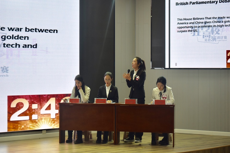本次比赛由定题演讲、即兴演讲和辩论三个环节组成。定题演讲以“The Ocean”为主题,时间三分钟,演讲结束后,选手回答评委现场提出的问题。即兴演讲由选手现场抽取题目,准备半分钟,演讲两分钟。辩论环节由前两环节得分前八名选手参加,抽签组成正反两方进行辩论。经过三个环节激烈角逐,外院参赛学生以过硬的专业能力和自如的临场发挥取得了优异成绩。