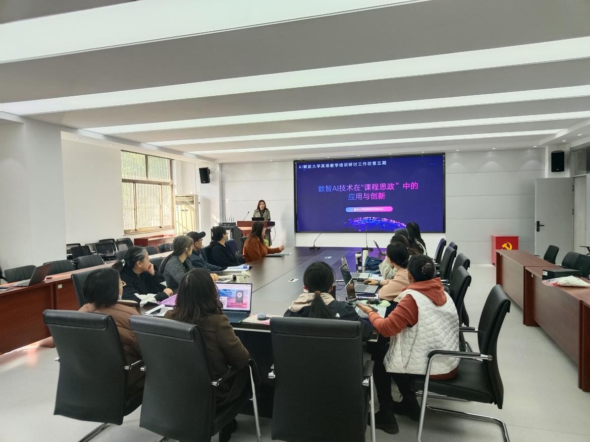 为主动适应数智时代教育变革,推动大学英语教学高质量发展,2025年10月20日,外国语学院大学英语第二教学部在文经楼C220会议室召开了以“AI赋能课程思政新路径”为主题的集体研讨活动。活动由教学部主任聂庆娟老师主持,全体教师参加本次教学研讨。