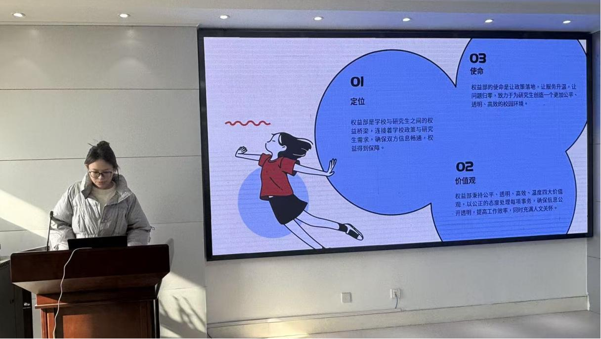 会上,各部门部长围绕职责分工和重点工作进行交流发言,对部门任务和工作要求作出说明。学术部、宣传部、权益部及实践与乡村振兴部结合实际,分别就学科竞赛与学术活动、新闻宣传与新媒体建设、学生权益保障以及社会实践组织等方面进行了介绍,进一步明确了工作重点。张一岳对本次培训会进行总结。她表示,各部门要强化沟通协作,压实工作责任,以务实高效的工作作风推动研究生会各项工作有序开展。
