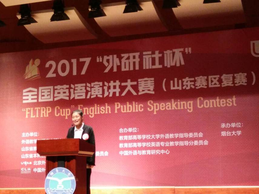 10月28日至29日,由外语教学与研究出版社和教育部高等学校大学外语教学指导委员会、教育部高等学校英语专业教学指导分委员会联合举办的“‘外研社杯’全国英语演讲大赛山东省复赛”在烟台大学如期举行,来自全省50多所高校的76名选手到会参赛。经过激烈角逐,我校外国语学院2016级英语专业仉大印同学获得三等奖,发挥出了自己应有的水平。