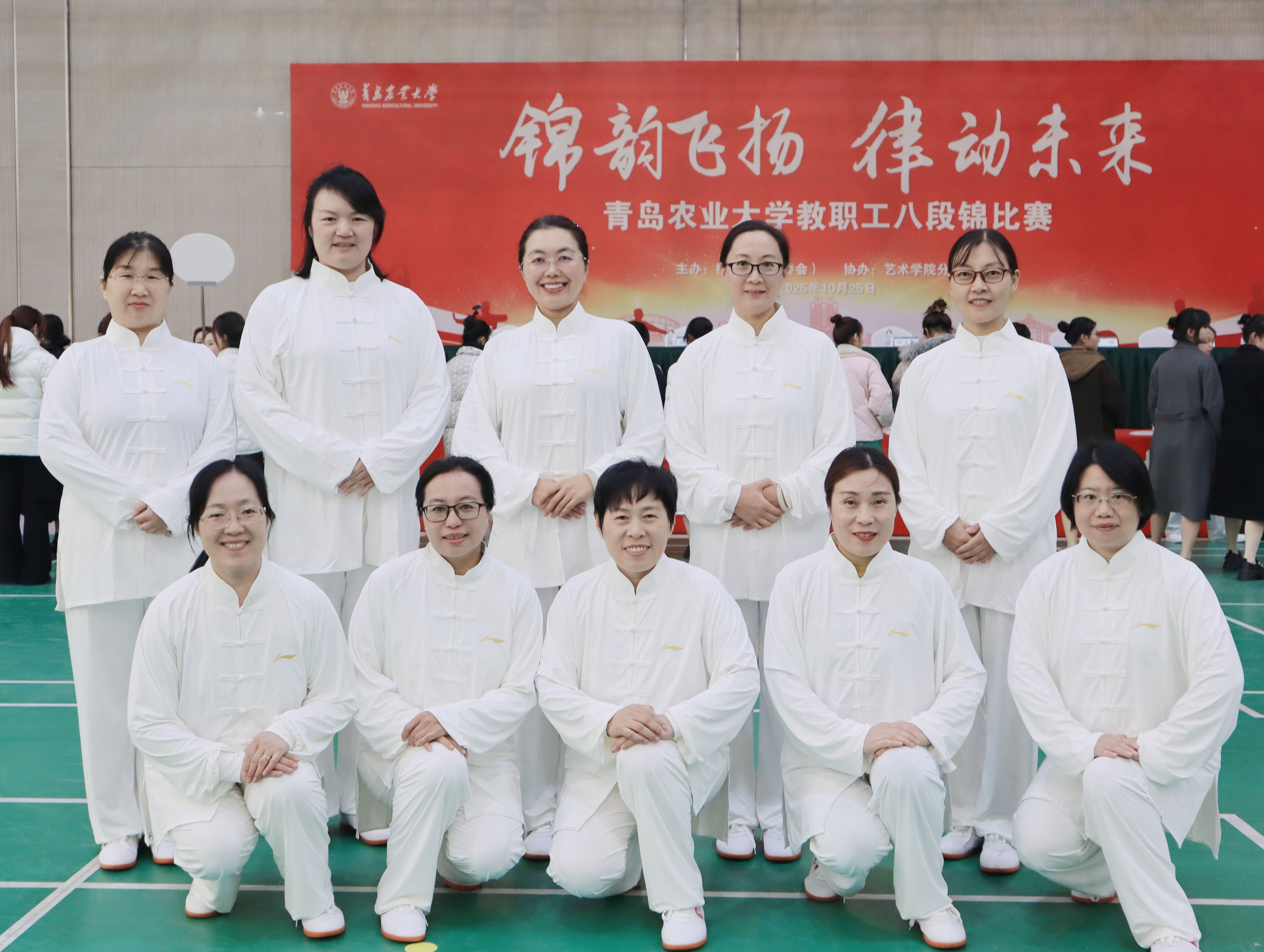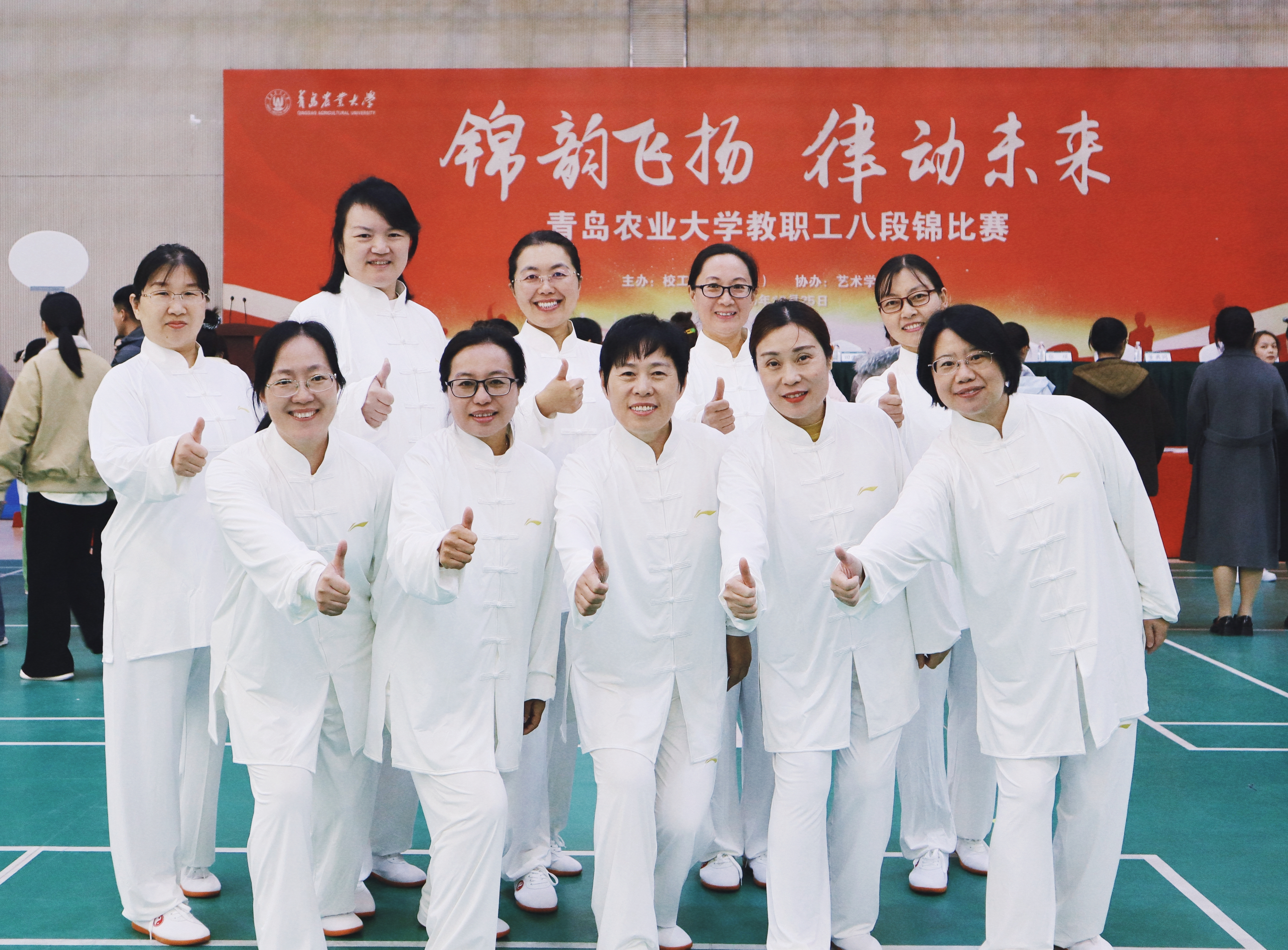 10月25日,青岛农业大学“锦韵飞扬,律动未来”教职工八段锦比赛在城阳校区文体馆落下帷幕,外国语学院教职工代表队以饱满热情、整齐动作参赛,彰显外国语学院教职工团结向上的精神风貌。