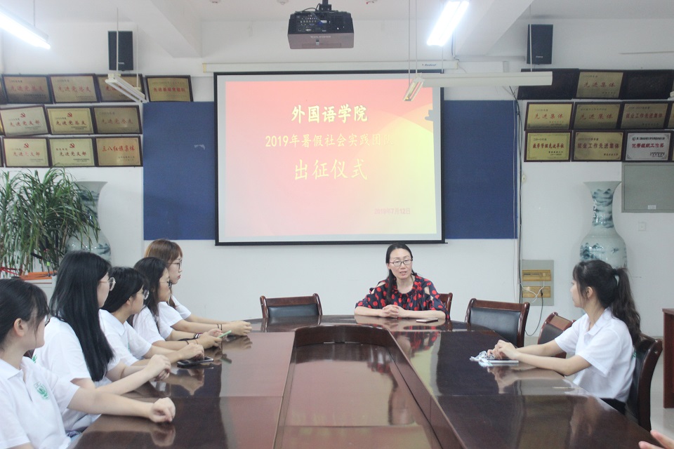 7月12日,青岛农业大学外国语学院于文经楼会议室举行2019暑期社会实践团队出征仪式。全体暑期社会实践团队队员参加出征仪式。