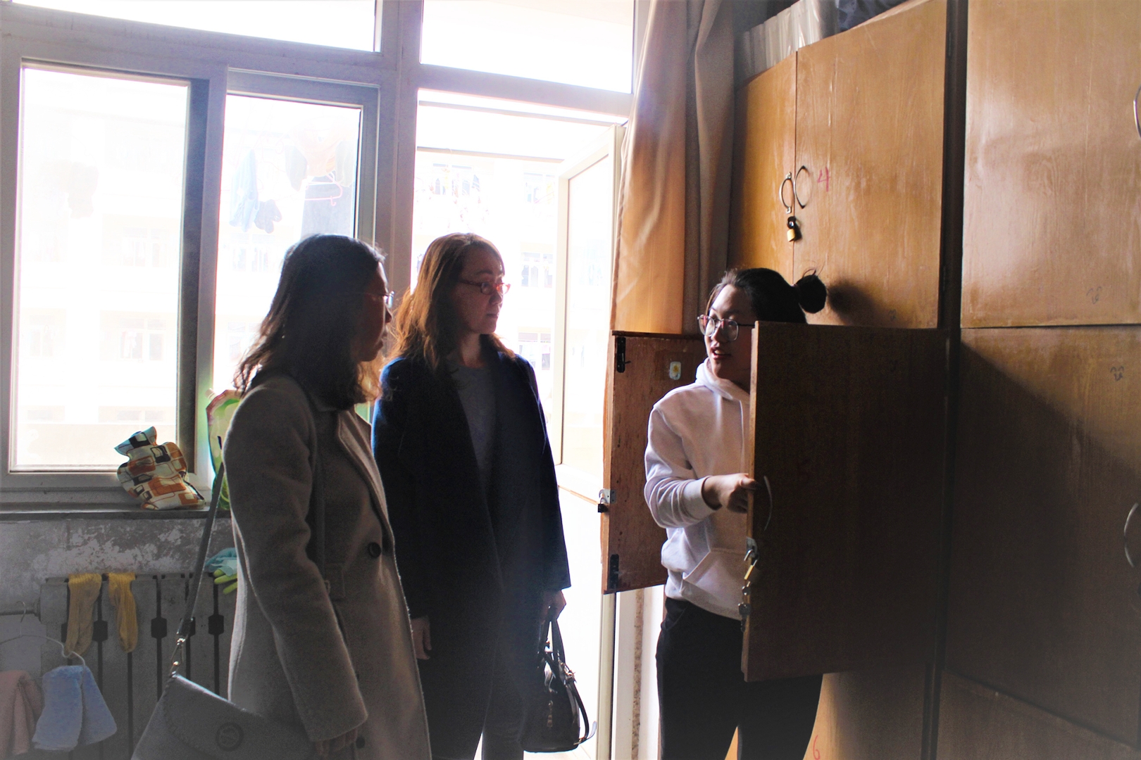 2月28日,青岛农业大学外国语学院开展宿舍卫生检查工作。团委书记嵇安奕、正科级辅导员刘艳走进学院学生宿舍,针对学生宿舍卫生展开督导工作,助力同学们营造良好宿舍环境。