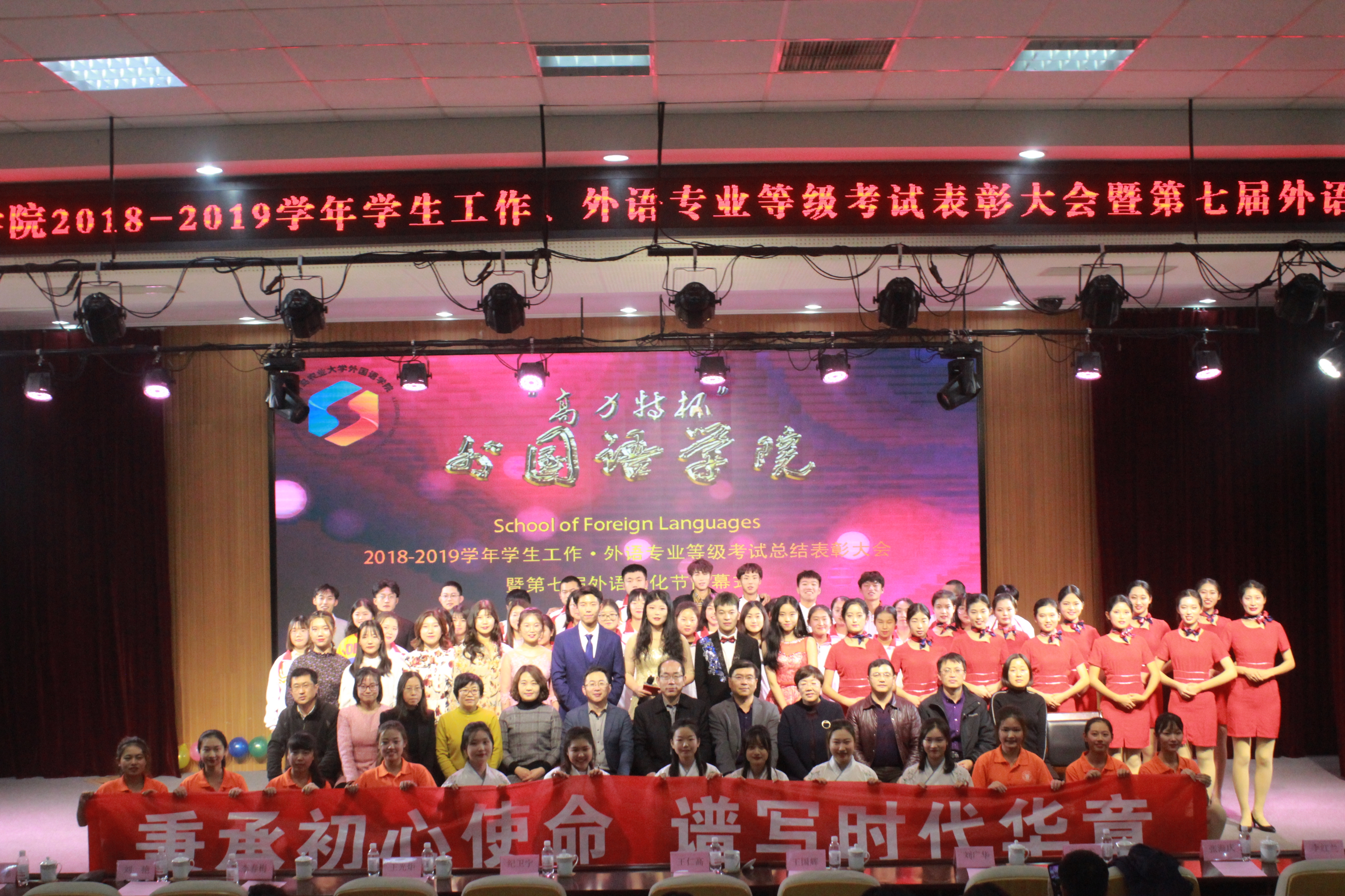 12月10日,青岛农业大学外国语学院举行2018-2019学年学生工作、外语专业等级考试总结表彰大会暨第七届外语文化节闭幕式。学工部副部长王国辉、团委副书记王光炬、学院领导、企业嘉宾出席,部分教师及学生代表参加。