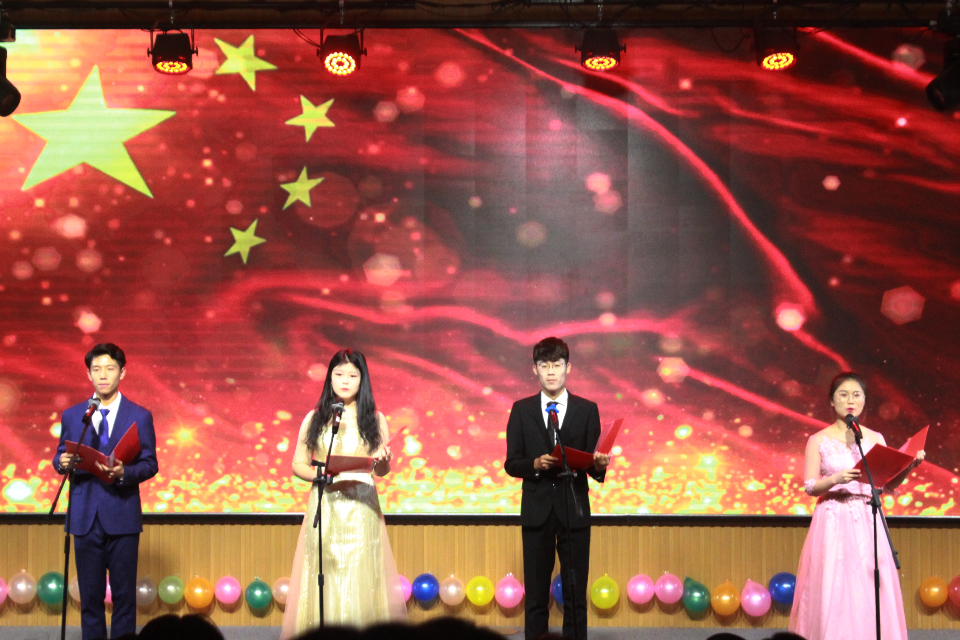 精彩的文艺汇演穿插在表彰颁奖环节中。开场的情景剧《从我做起》和礼仪风采表演展现了外院学子良好的精神风貌和社交礼仪,歌曲《告白气球》唱出了青年学生内心的细腻与美好,激情四射的爵士舞充分展示了学生们的青春与活力,朗诵《为你祝福,我的祖国》表达了广大青年对祖国的爱和强烈的民族自豪感,中日英韩歌曲串烧展示了外院学生扎实的语言功底,古风舞蹈《浪人琵琶》展现了我国的传统文化的独特魅力,校歌合唱表达了外院全体学子对学校的热爱,将现场的气氛推向高潮。