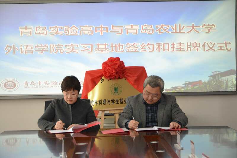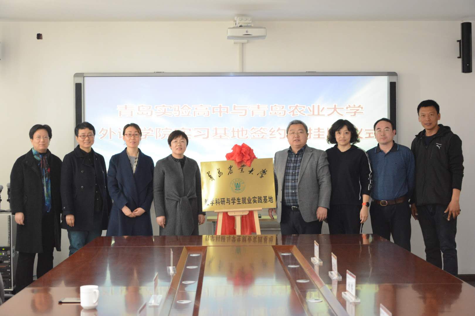 3月13日,青岛农业大学外国语学院副院长纪卫宁、团委书记嵇安奕、英语教师董博宇、韩小敏前往青岛市实验高级中学签订合作协议,并举行了校外实习基地揭牌仪式。青岛市实验高级中学校长孙睿、副校长石华军、副校长张禹等出席仪式。截至目前,学院已经与城阳街道管辖的10所小学以及城阳区实验中学建立了实习合作关系。此次与青岛市实验高级中学合作实现了外国语学院英语教学实习基地 “小学-初中-高中”的全线贯通。