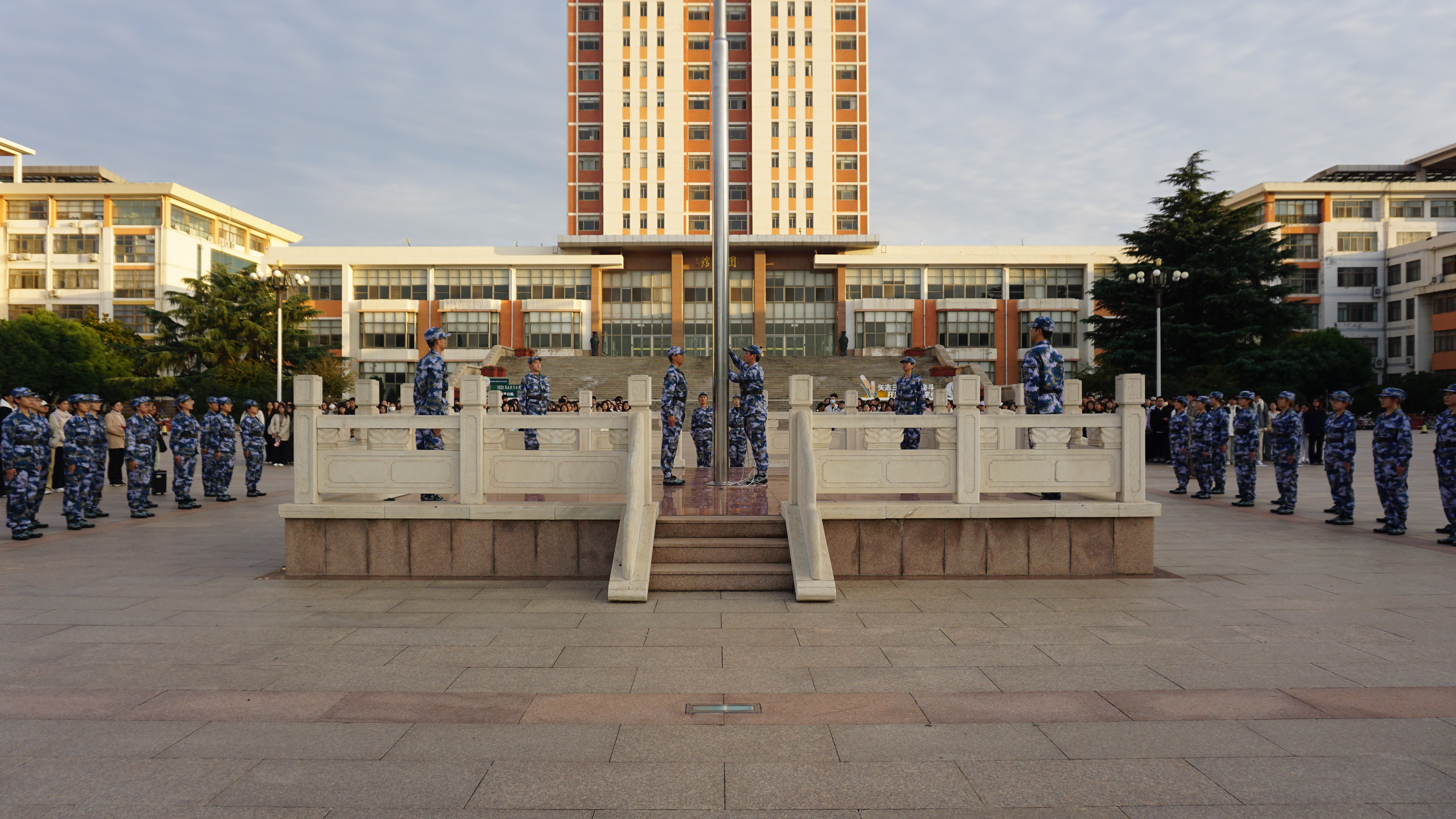 10月20日,外国语学院分别于城阳校区虹子广场和平度校区学子广场开展“厚植爱国情怀,勇担历史使命”主题团日活动暨升国旗仪式。城阳校区、平度校区升旗仪式分别由团委书记线郁、辅导员王洋洋主持,2023级、2024级、2025级全体学生参加。