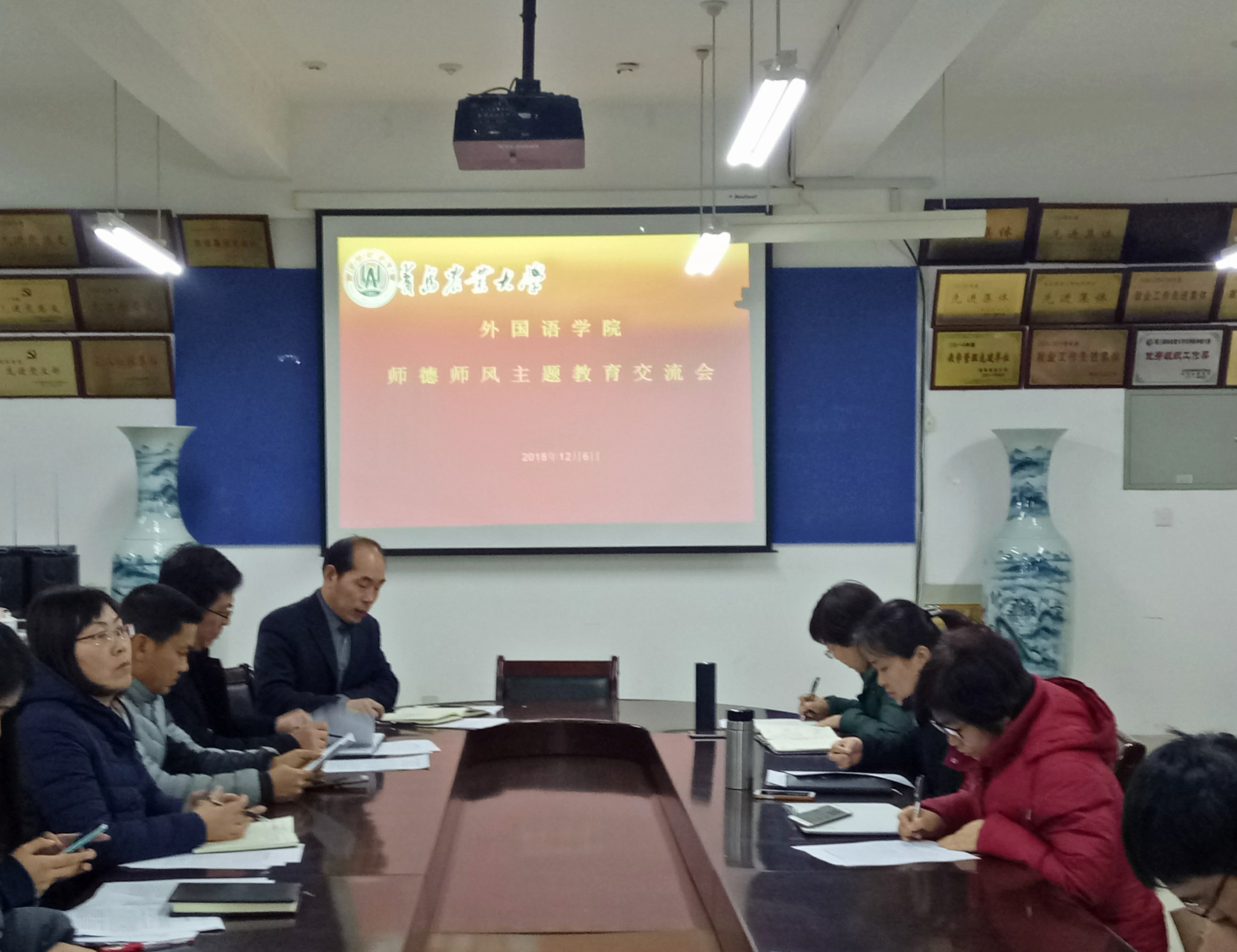 12月6日,青岛农业大学外国语学院于文经楼会议室召开师德师风主题教育交流会。学院党政领导出席,全体教职工参加。交流会由党委书记王仁高主持。