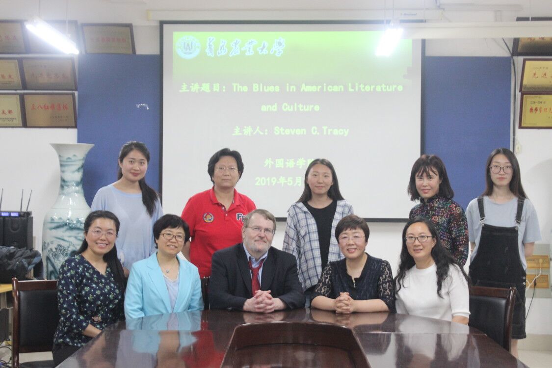 5月23日,青岛农业大学外国语学院邀请美国马萨诸塞大学杰出教授、非裔美国文学和布鲁斯音乐交叉领域权威专家Steven C. Tracy做题为《美国文学和文化中的布鲁斯》学术报告。报告由学院副院长纪卫宁主持,全体英语专业教师和部分学生代表聆听了报告。