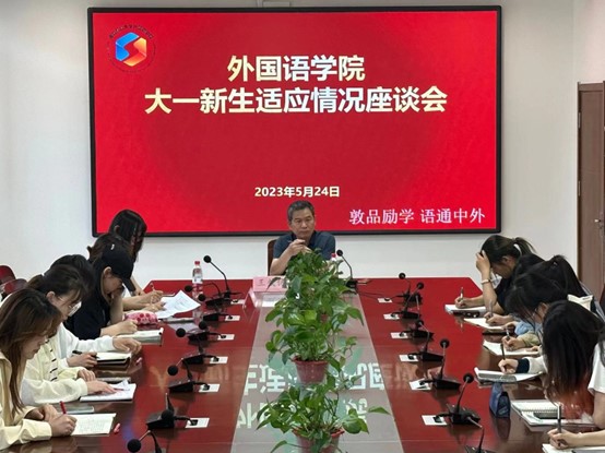 5月24日,外国语学院于平度校区明德楼会议室召开2022级学生大学适应情况座谈会。学院党委书记王效仿出席,2022级辅导员邹晓婷主持,学院2022级部分学生代表参加。