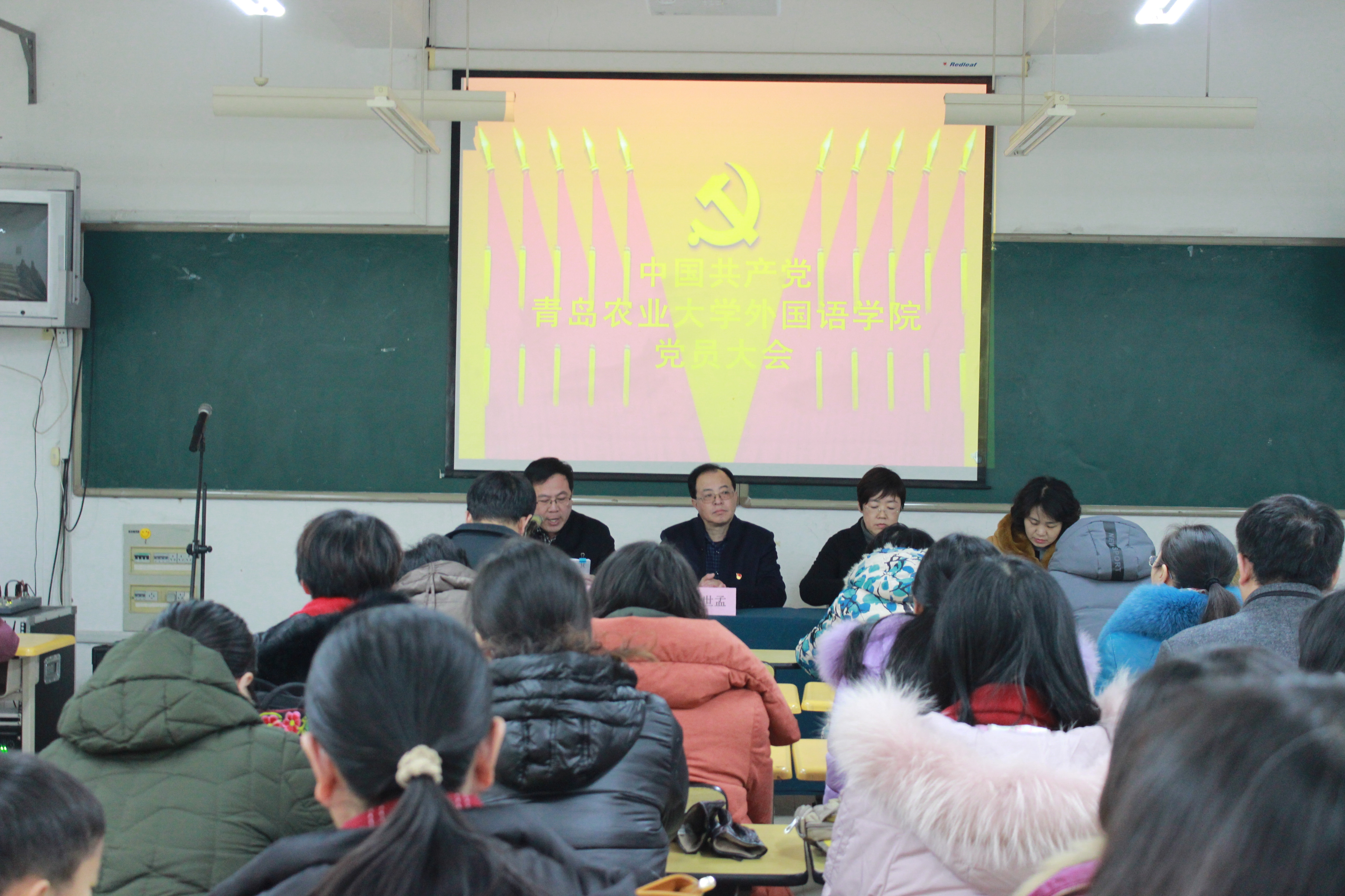 12月11日,外国语学院党员大会于文经楼召开,会议由党委副书记王晓雷主持,学院党委书记孙世孟、副院长纪卫宁、李春梅及全体党员与会。
