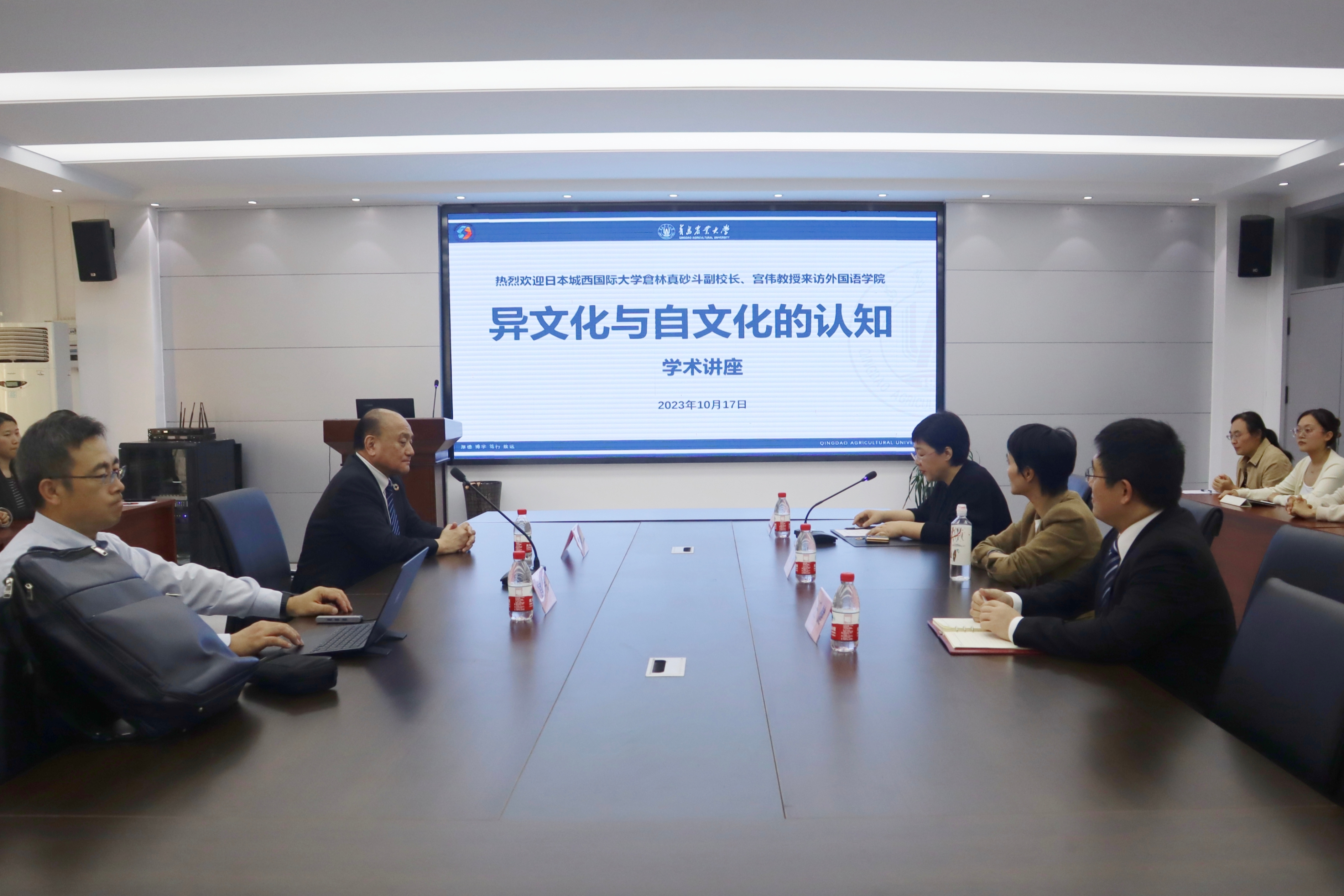 10月17日,日本城西国际大学副校长仓林真砂斗,人文科学研究科教授、国际教育中心副主任宫伟来访外国语学院进行友好交流。青岛农业大学外国语学院院长纪卫宁、国际交流合作处处长许颖、科长熊柳、日语系副主任王健、日语系教师代表仇虹、陈帅参与交流会,学院全体日语专业学生参加。