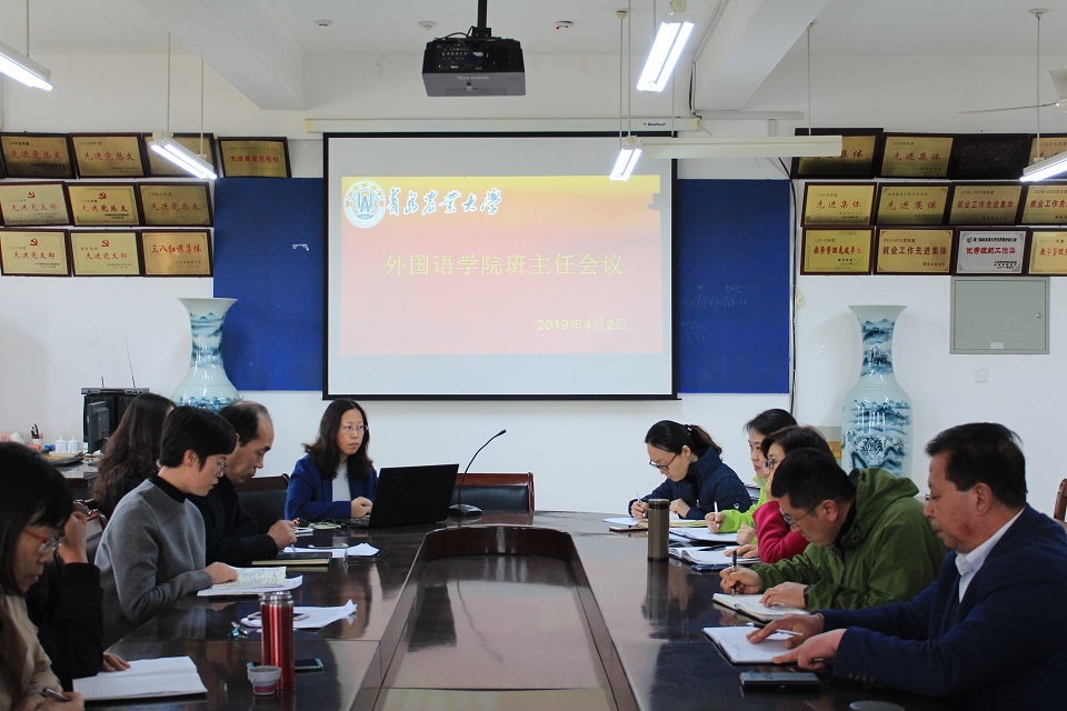 4月2日,青岛农业大学外国语学院于文经楼会议室召开班主工作任会议。学院党政领导出席,学工办成员和全体班主任参加,会议由学院党委副书记许颖主持。