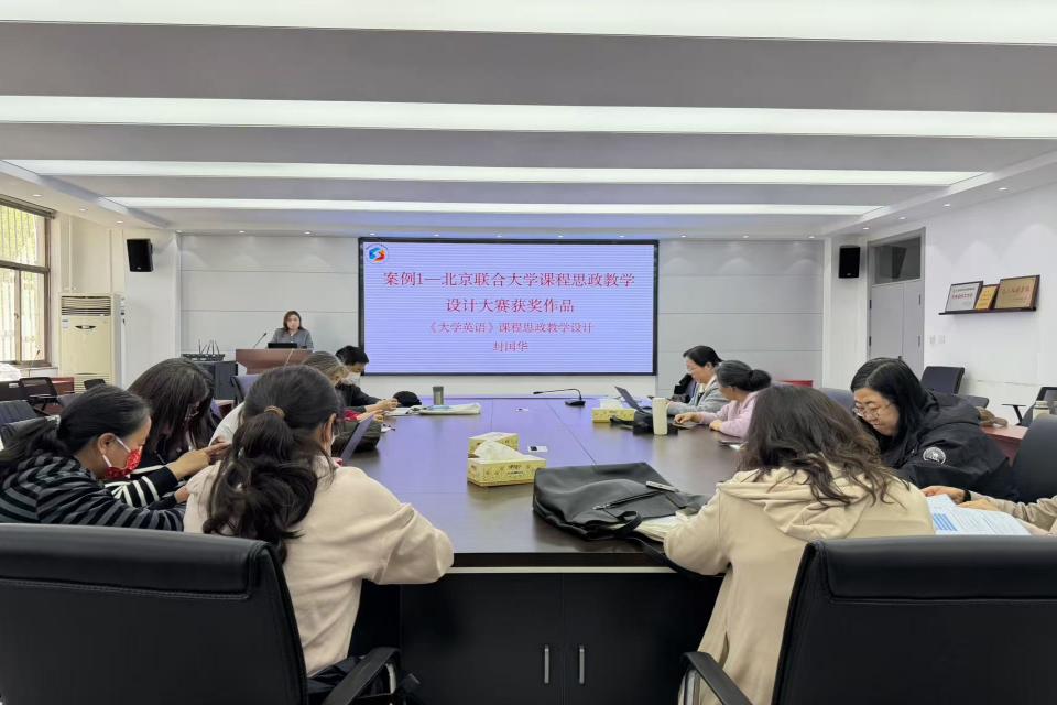 为落实立德树人根本任务,深入推进课程思政建设,提升教师课程思政教学能力,2026年4月20日,外国语学院大学英语第二教学部在文经楼C220召开以“课程思政教学质量评价与观摩研讨”为主题的大学英语课程思政专题培训。活动由教学部主任聂庆娟主持,教学部全体教师参加本次教学研讨。