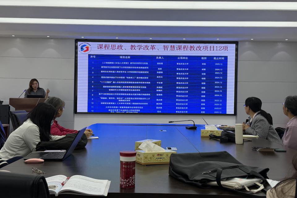 首先,聂庆娟带领教学部老师研读了《青岛农业大学课程思政教学质量评价标准》,重点从育人目标、课堂教学、课程教师、教学评价等方面进行了解读。随后,聂庆娟带领教学部老师观摩学习了两个课程思政教学案例,分别为北京联合大学封国华老师的《大学英语》课程思政教学设计和山东省本科高等学校课程思政教学比赛一等奖获得者、山东科技大学刘春晖教授的《数字电子技术》课程思政教学设计。基于教学观摩,老师们从课程思政资源的挖掘、融入方式等方面开展了热烈的研讨。从两个教学设计案例中,老师们学习了如何将课程思政与教学材料进行有机融合,更加深刻地理解课程思政的内涵与意义,进一步明确了将思政元素有机融入课程教学的方法与路径。