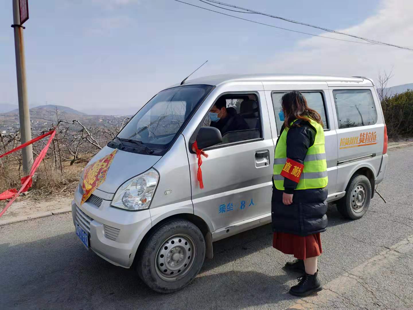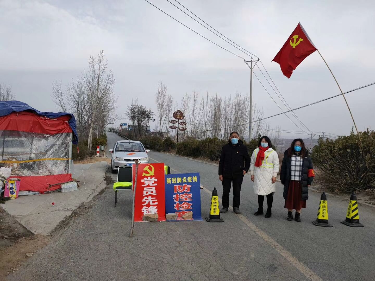英语1803班的薛盎然,现在临沂市蒙阴县高都镇高蒙线防控检查站及党员先锋岗协助站岗,对来往车辆进行询问检查,义务宣传疫情防控知识。村里党员进行了分组轮流执勤,自2月11日开始,只要没有事情她就会过去帮忙。