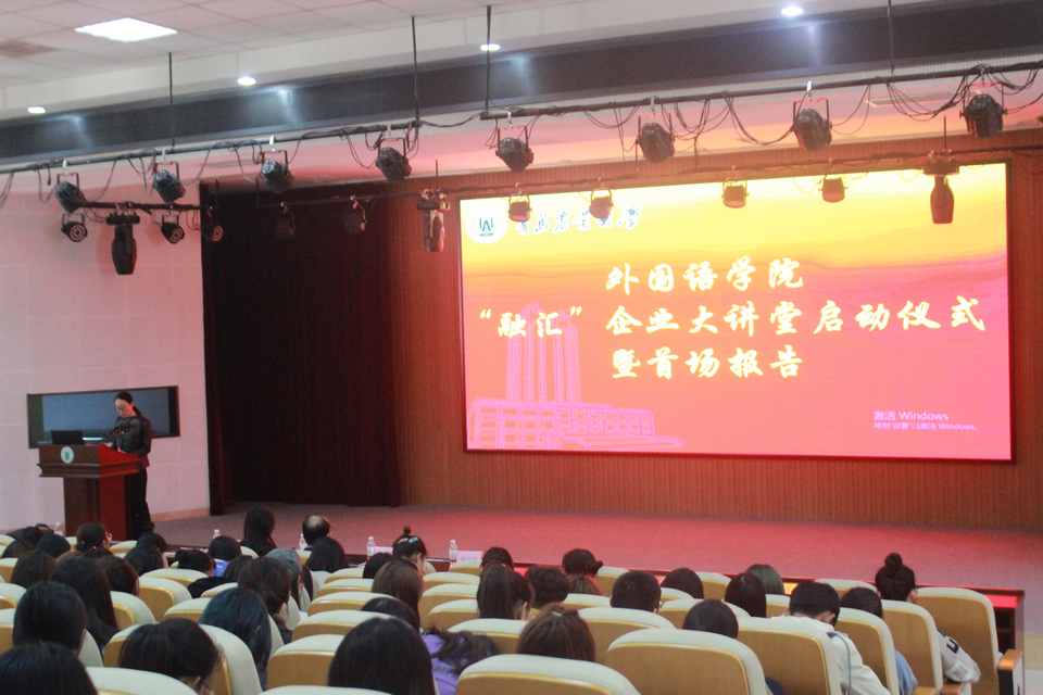 会上,团委书记嵇安奕宣读了外国语学院 “融汇”企业大讲堂实施方案。企业大讲堂是外国语学院“融”文化建设的组成部分,以“融汇”为标识,以“融通校企资源,汇聚育人合力”为主题。讲堂以宣讲优秀企业文化、企业家及创业典型等先进事迹为主要内容,以搭建我校师生与企业精英、创业先锋、优秀校友等沟通互动平台,展现创新创业的思想精髓和行业领域的前沿动态,引导大学生做好成长规划,筑牢专业思想,明确学科专业发展前景,端正学习态度,增强自我发展的动力。