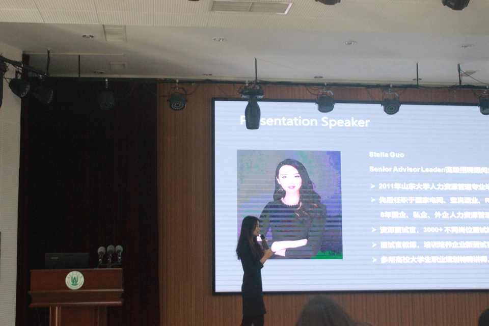启动仪式后,大讲堂举办了首场报告。报告邀请青岛优创公司人力资源部经理郭慕瑶为大学生作了题为《如何在面试中脱颖而出》的报告,她详细阐述了面试的种类、面试前的必做攻略,并从三个方面介绍了如何在面试中脱颖而出,为同学们提供了多种备战方法。最后通过七大面试官必问问题的解答,使同学们更加清晰了面试中的应答技巧。