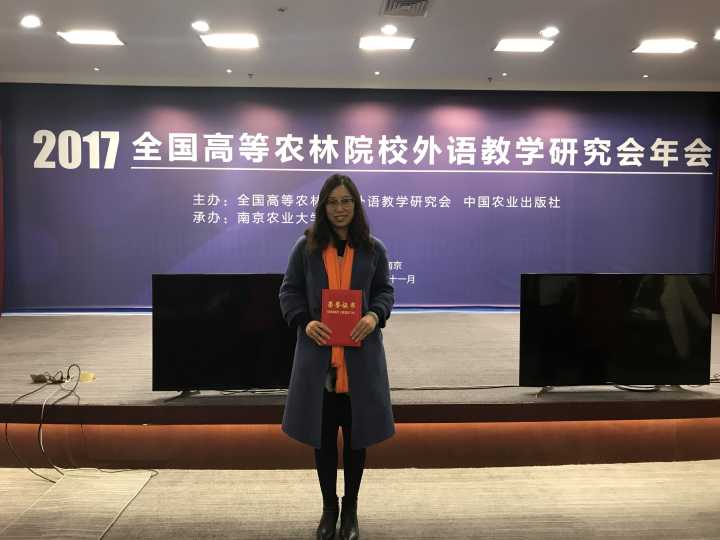 全国高等农林院校英语讲课大赛由全国高等农业院校外语教学研究会、中国农业出版社联合主办,于11月25日在南京农业大学举行。来自南京农业大学、东北农业大学、西北农林科技大学等全国21所农林院校的老师参加了比赛。比赛分别以讲课比赛和说课比赛进行初赛和决赛。高丽老师在讲课比赛中以小组第一的成绩进入决赛,最终以优异的成绩获得一等奖。