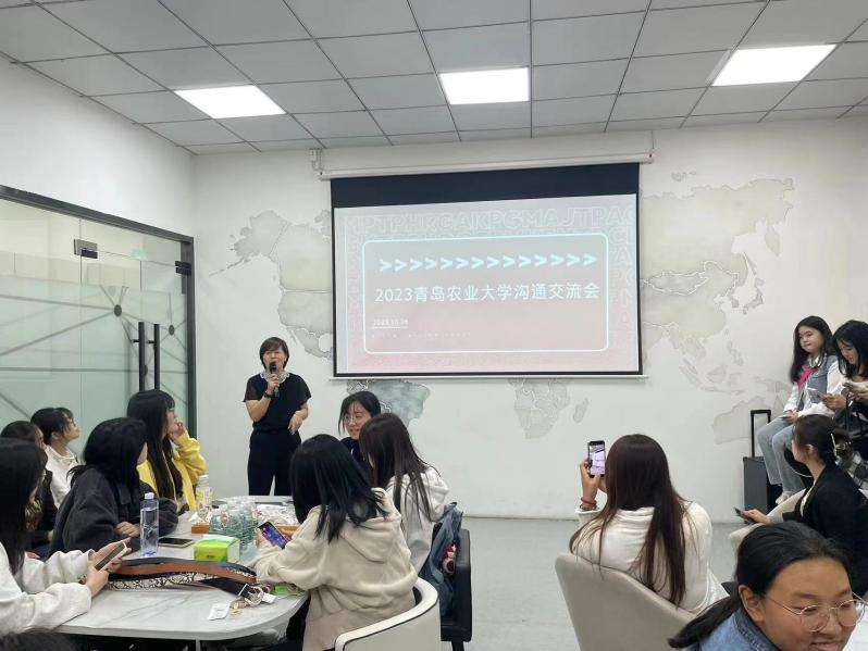 参观结束后,荣兴饰品青岛总监Kitty为同学们讲解了公司业务和经营状况、公司先进的企业文化理念、公司员工管理模式以及公司职业晋升与个人发展路径、薪资待遇及福利保障等问题。人事经理Lucky针对同学们关心的实习和就业问题和同学们进行了交流。座谈活动结束后,教师们去看望了在该公司工作的校友。
