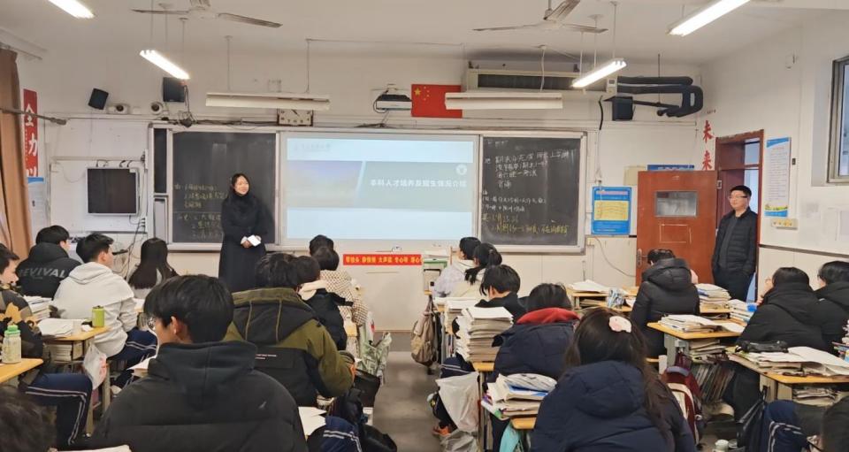 在胶州三中,赴青岛实践团通过PPT展示、资料发放等形式,向高三学子介绍青农办学特色、优势学科及特色专业,同时拜访恩师、讲述自己的成长经历;在巨野一中,赴滨州实践服务团面向70余名高三学生系统讲解青农历史、学科优势与招生政策,分享备考技巧,并通过访谈问卷收集反馈。