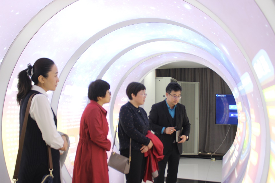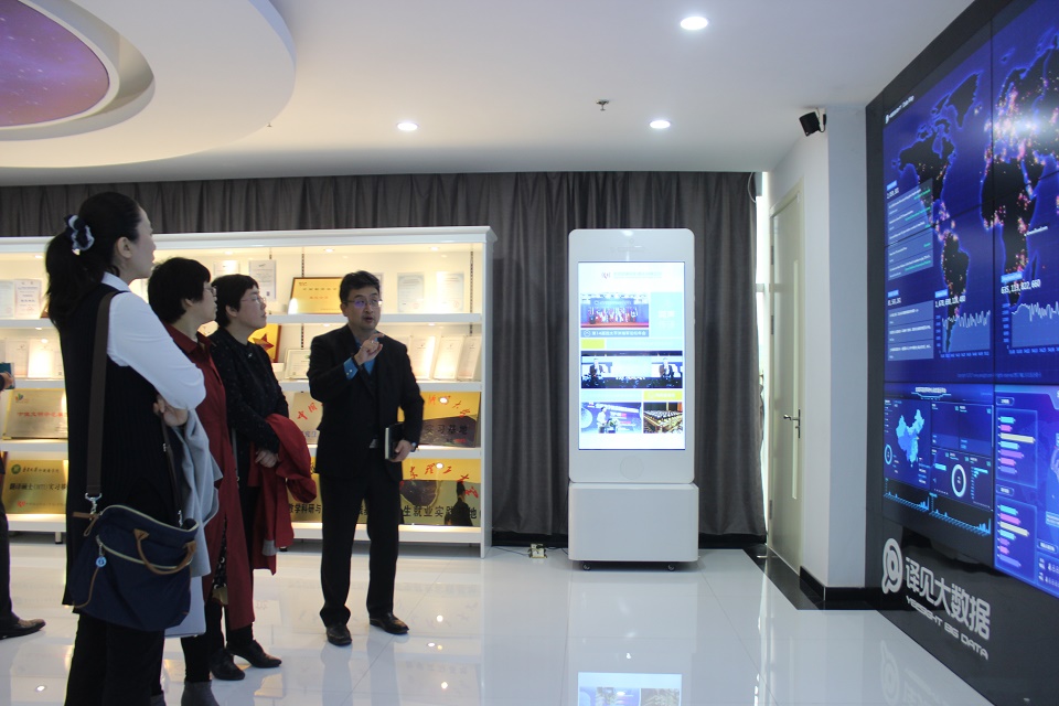 随后,张宏磊陪同纪卫宁一行参观了中译语通科技(青岛)有限公司智能展厅,浏览了公司时光发展隧道,体验了LanguageBox • 语言盒子、中译语通“悦译”智能同声传译机等语言科技产品,以及“译见”工业大数据、科技大数据、旅游大数据等行业大数据解决方案。