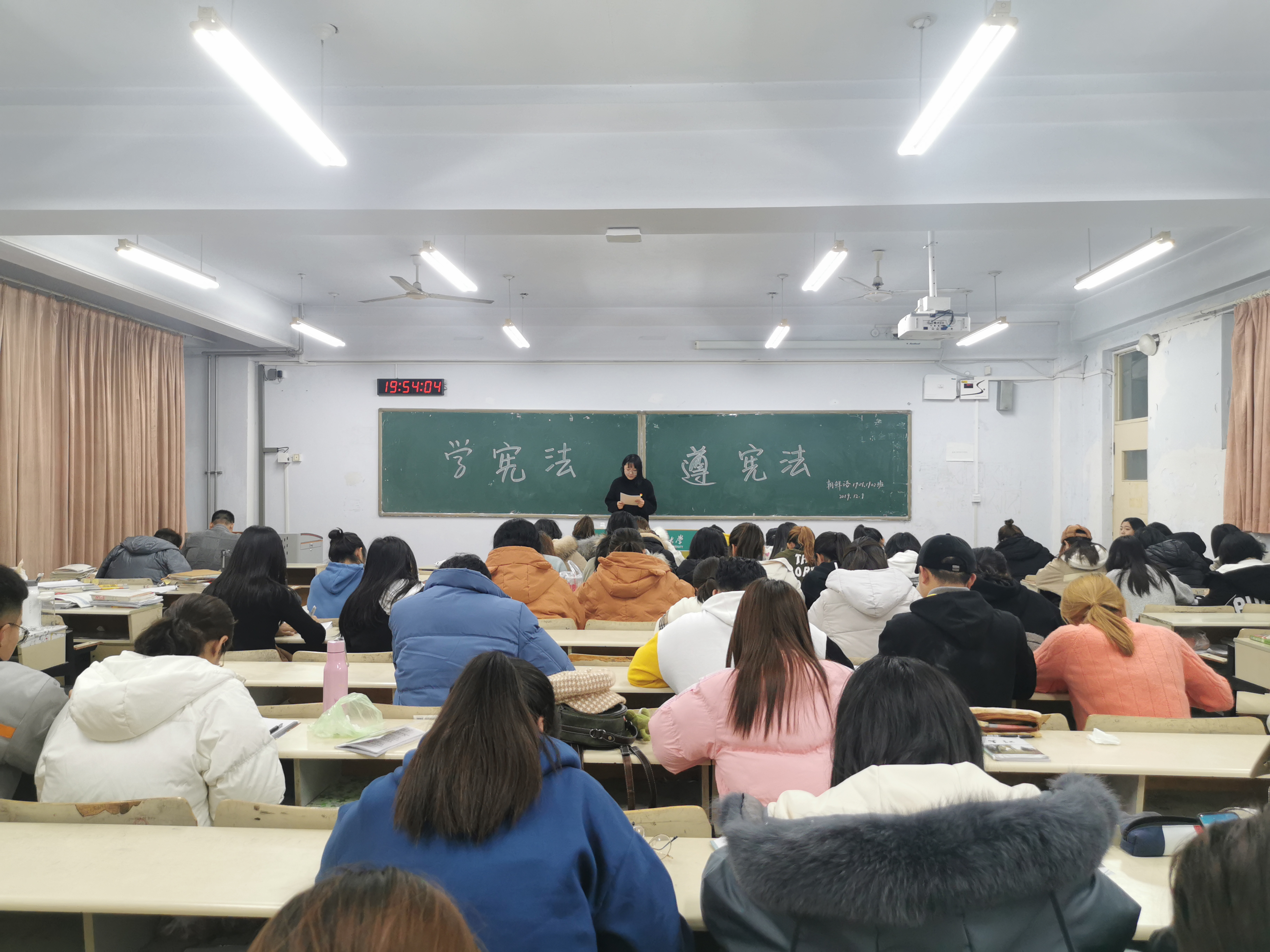 12月7日晚,学院组织学生会和学生服务中心学生干部及部分学生代表于文经楼会议室观看宪法宣教视频,视频内容突出了宪法与公民现实生活的联系。12月8日晚,学院利用周末政治学习时间,组织2017级、2018级、2019级青年团员重点学习《宪法》“序言”和“总纲”部分,并与“一二·九运动”学习内容相结合,围绕学习内容所涉及的党史、国史、国情展开讨论。