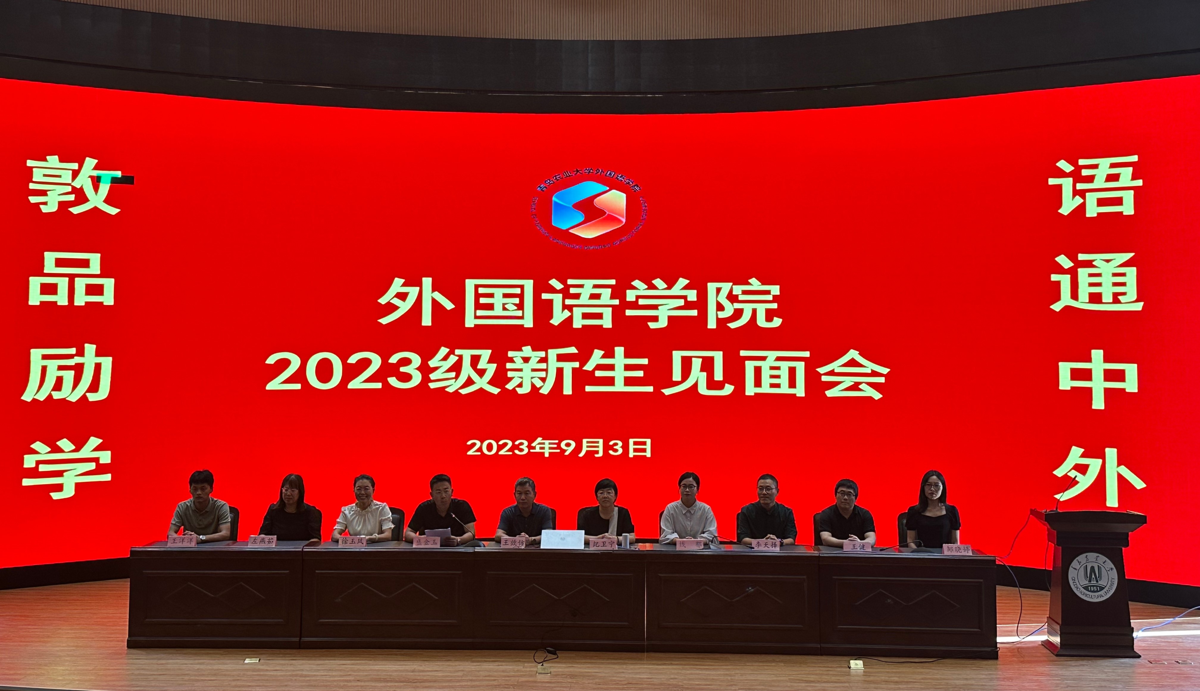 9月3日,青岛农业大学外国语学院于平度校区思源多功能厅召开2023级新生见面会。外国语学院党委书记王效仿、院长纪卫宁、各系主任和副主任代表、学院办公室和学院学生工作办公室成员以及学院2023级新生参加会议,会议由学院党委副书记、副院长盛金玉主持。