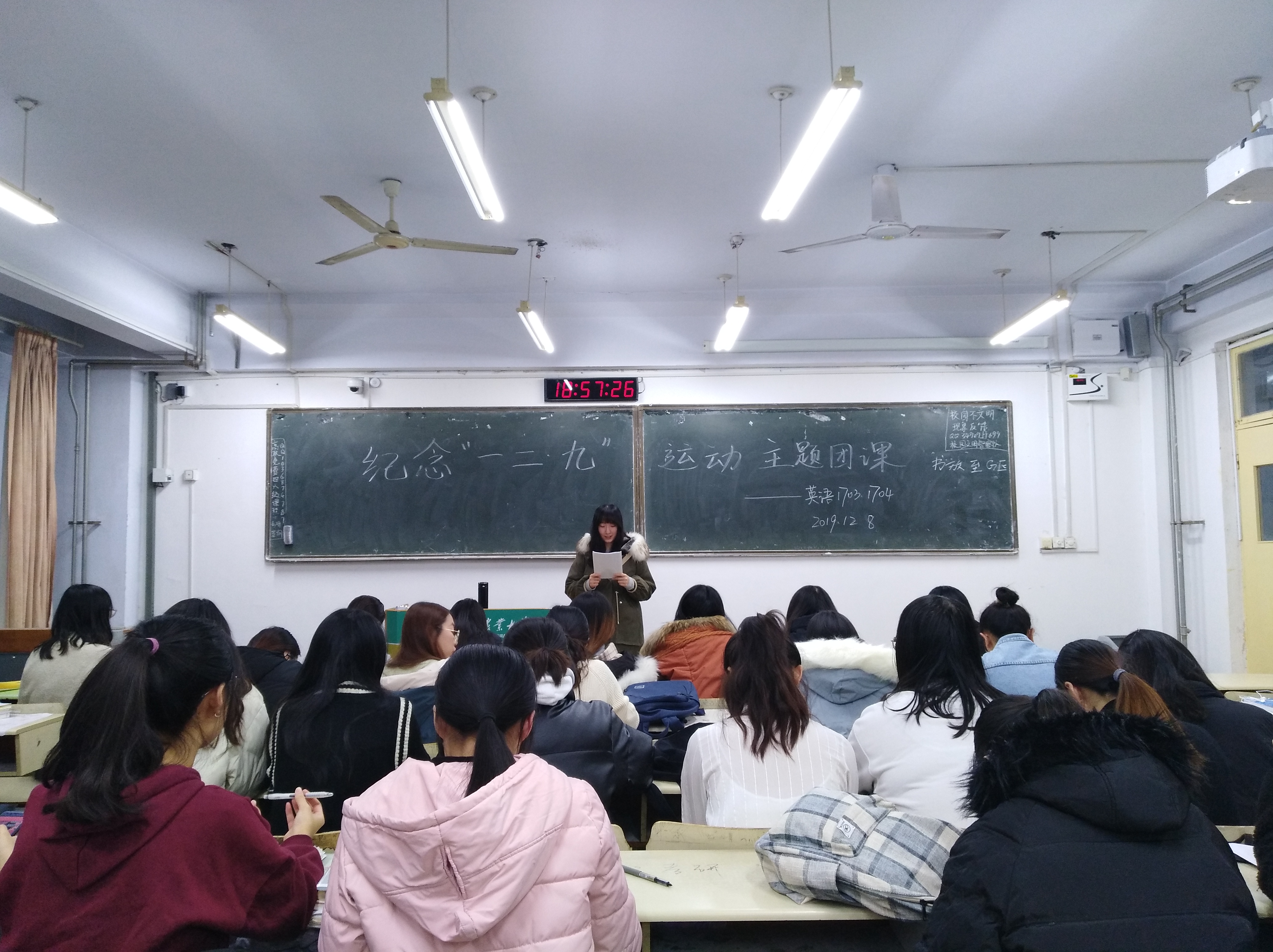 2019年12月8日,外国语学院2017级、2018级和2019级全体团员于教学区A区开展纪念“一二·九运动”主题团课学习,各支部团支书主持学习。
