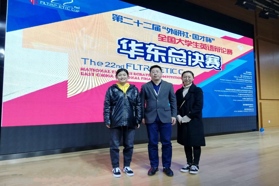 3月22日至24日,第二十二届“外研社·国才杯”全国大学生英语辩论赛华东地区总决赛于苏州西交利物浦大学举行。来自上海、浙江、江苏、山东、安徽的109支高校代表队同场竞技,比赛包括六轮循环赛和四强辩论决赛。最终,上海外国语大学代表队、国防科技大学国际关系学院代表队、西交利物浦大学代表队与复旦大学代表队分别获得了冠军、亚军和季军。青岛农业大学代表队由外国语学院教师蒋长刚带队指导,16级英语专业学生栾逸群和仉大印参赛,获得三等奖。此外,青岛农业大学荣获华东赛区优秀组织奖,蒋长刚被评为优秀评委。
