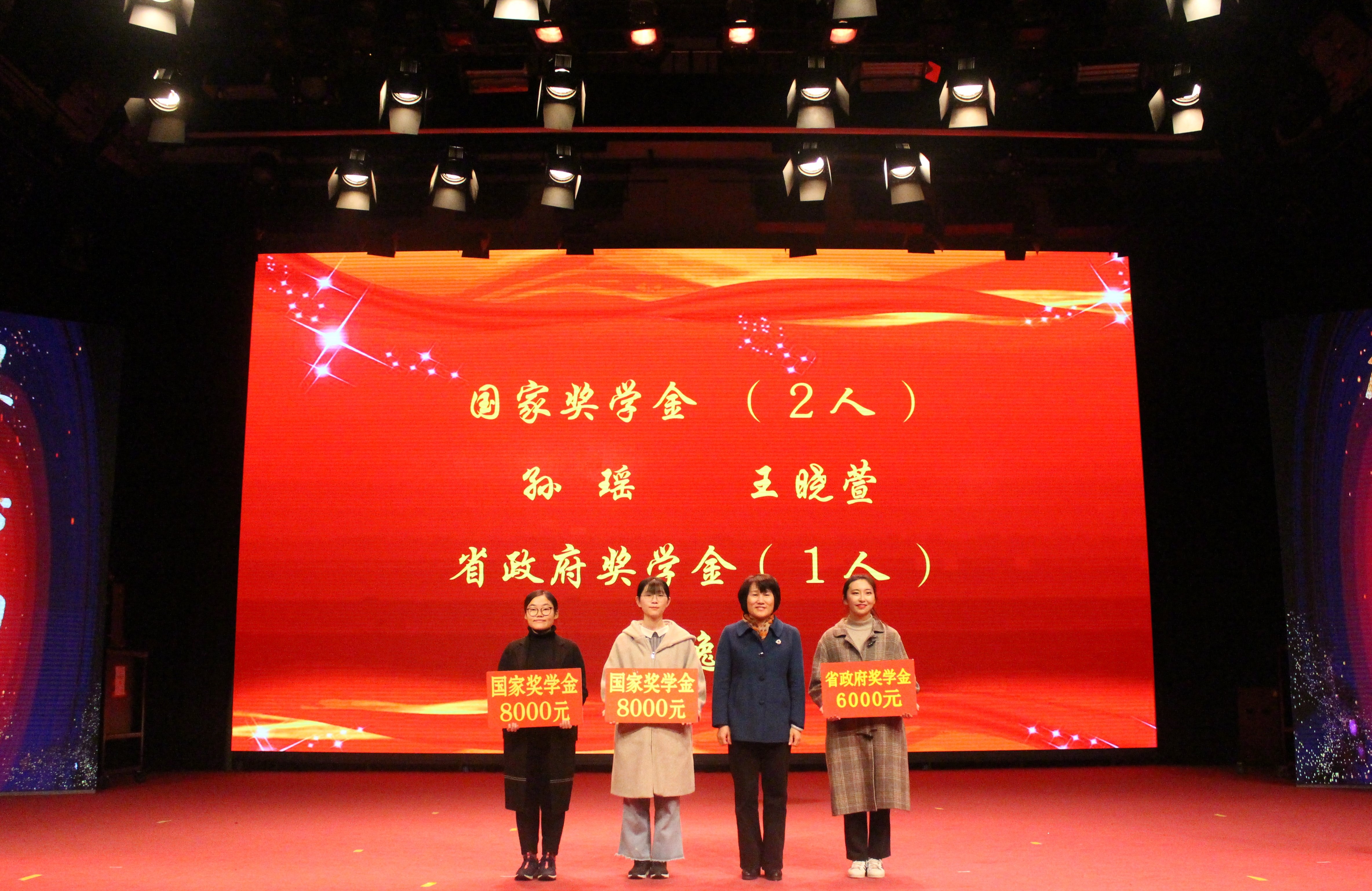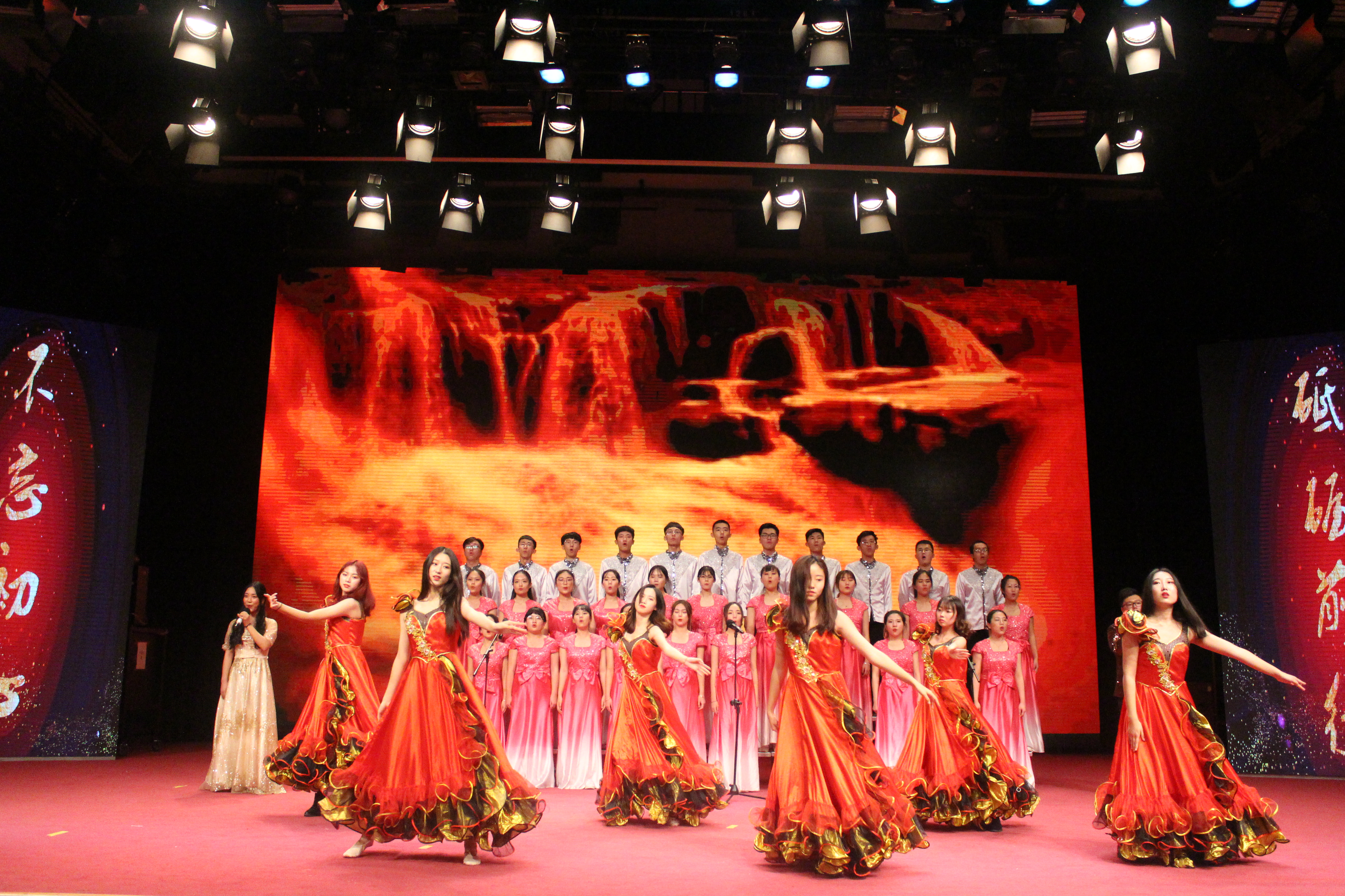 穿插在表彰颁奖环节中间,进行了精彩纷呈的文艺表演。开场爵士舞《doctor pepper》展示了青春动感的风采;配乐诗朗诵《中国奇迹》讴歌了新中国成立以来特别是改革开放四十年来的辉煌成就;舞蹈《芳华》诠释了回忆珍藏的青春年华;校大学生民乐队器乐合奏《卷珠帘》、《权御天下》展现了传统民乐的独特魅力;歌曲《世界上唯一的花》唱出了青年学生的自信和梦想;学院花火戏剧社的英文话剧片段《麦克白》以流畅自如的表演展示了外院学子过硬的语言实际运用能力;学院大学生礼仪队的礼仪风采表演体现了外院学子将文明礼仪内化于心、外化于行的精神风貌;院学生会成员的合唱《共筑中国梦》,表达了外院学子对伟大祖国的由衷热爱,将现场的气氛推向高潮。