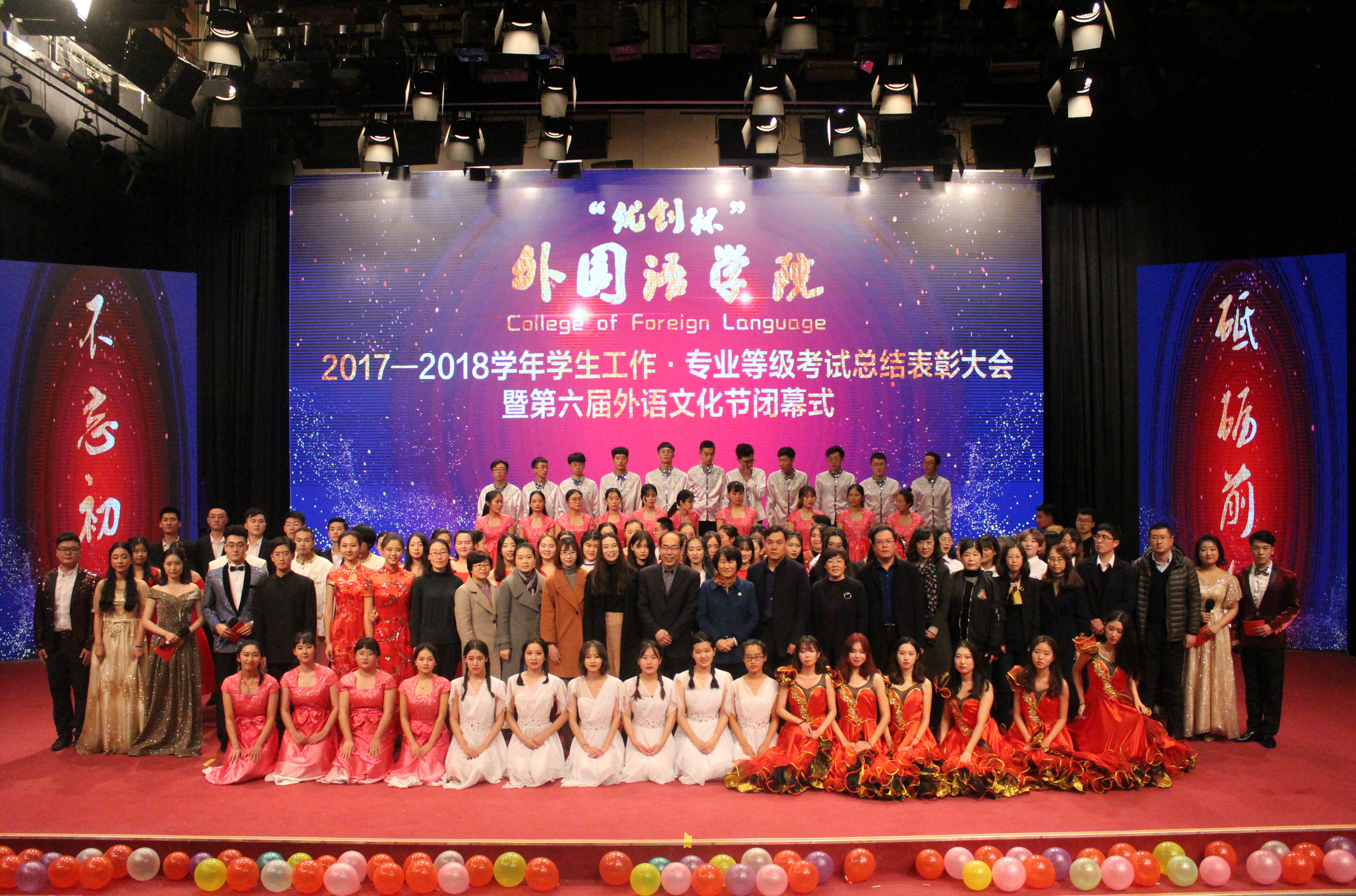 12月2日,青岛农业大学外国语学院2017—2018学年学生工作、专业等级考试总结表彰大会暨第六届外语文化节闭幕式于文经楼演播大厅举行。副校长刘春霞、学工部副部长孙景福及学院领导出席,部分教师及学生代表参加。本次活动由优创数据有限公司赞助,特别邀请了公司招聘主管郭慕瑶、邓嵘女士出席。
