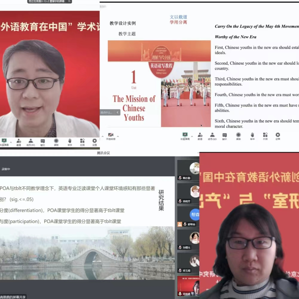 外国语学院英语专业教师董博宇;高艳艳两位老师受邀参加了线上研讨会的分会场发言。董博宇老师的汇报题目为《身份构建视角下产出导向法中驱动场景设计中的策略研究》。董老师的研究从身份模糊与身份不当入手,基于身份构建理论,以《理解当代中国英语读写教程》为例,从言语行为与立场表达两项话语实践入手,构建了交际者中国故事讲述者和传播者的身份。高艳艳老师的汇报题目为《POA理念下的英语专业泛读课堂环境研究》。高老师以主讲的英语专业泛读课堂为研究对象,采用问卷调查的研究方法,研究结果表明在产出导向法理念下,学生的课堂环境的感知度在独立性和探索性方面有显著不同,同时,在产出导向法和任务教学法不同的课堂环境中,学生的感知度在区分度和参与度方面也有显著不同。
