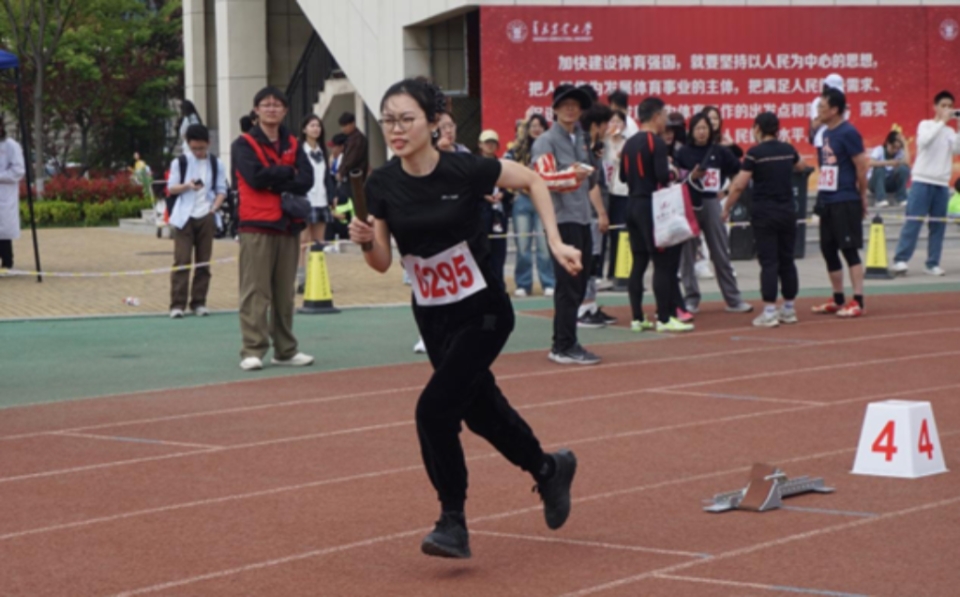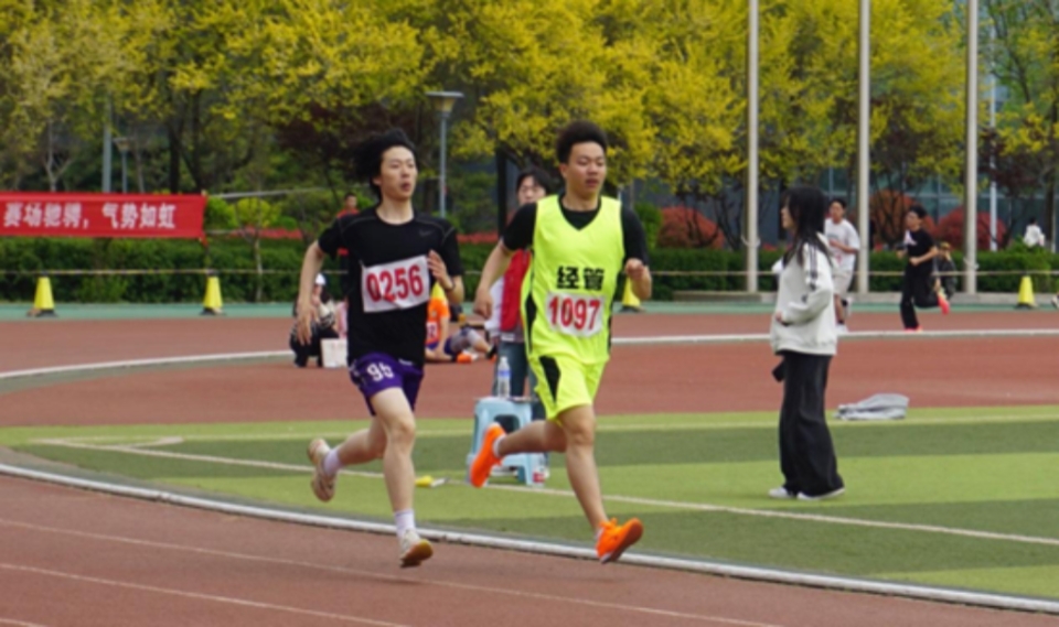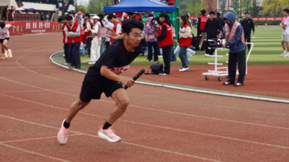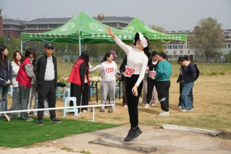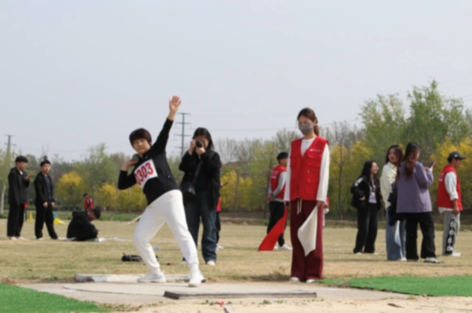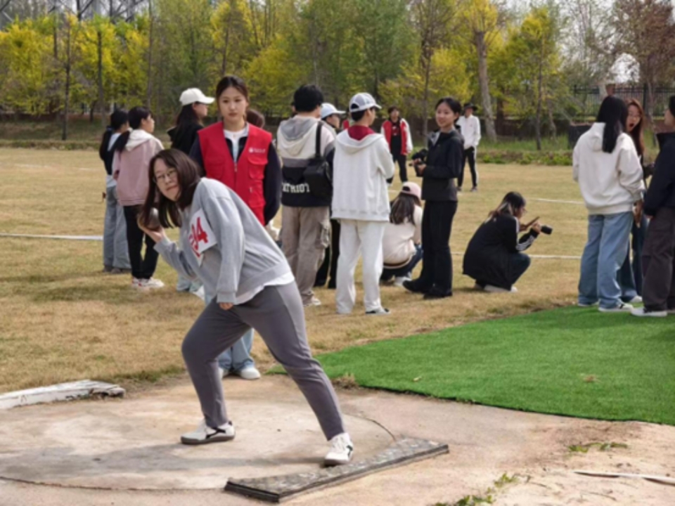 赛场上,发令枪响,便是速度与激情的碰撞。在百米赛道,外院健儿们如离弦之箭,奋力冲向终点;在中长跑项目中,运动员们即使汗水湿透衣衫,依然咬紧牙关,用坚持诠释体育精神。接力赛中,队员们默契配合,每一次交接棒都凝聚着信任与希望。田赛场上同样精彩纷呈,参加铅球、标枪、铁饼项目的选手们蓄力、投掷,践行了“青春无畏”的誓言。