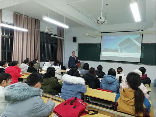 12月6日,外国语学院于文经楼举办专利翻译讲座,讲座由大学英语教研室教师张立庆主讲,英语专业部分学生参加。
