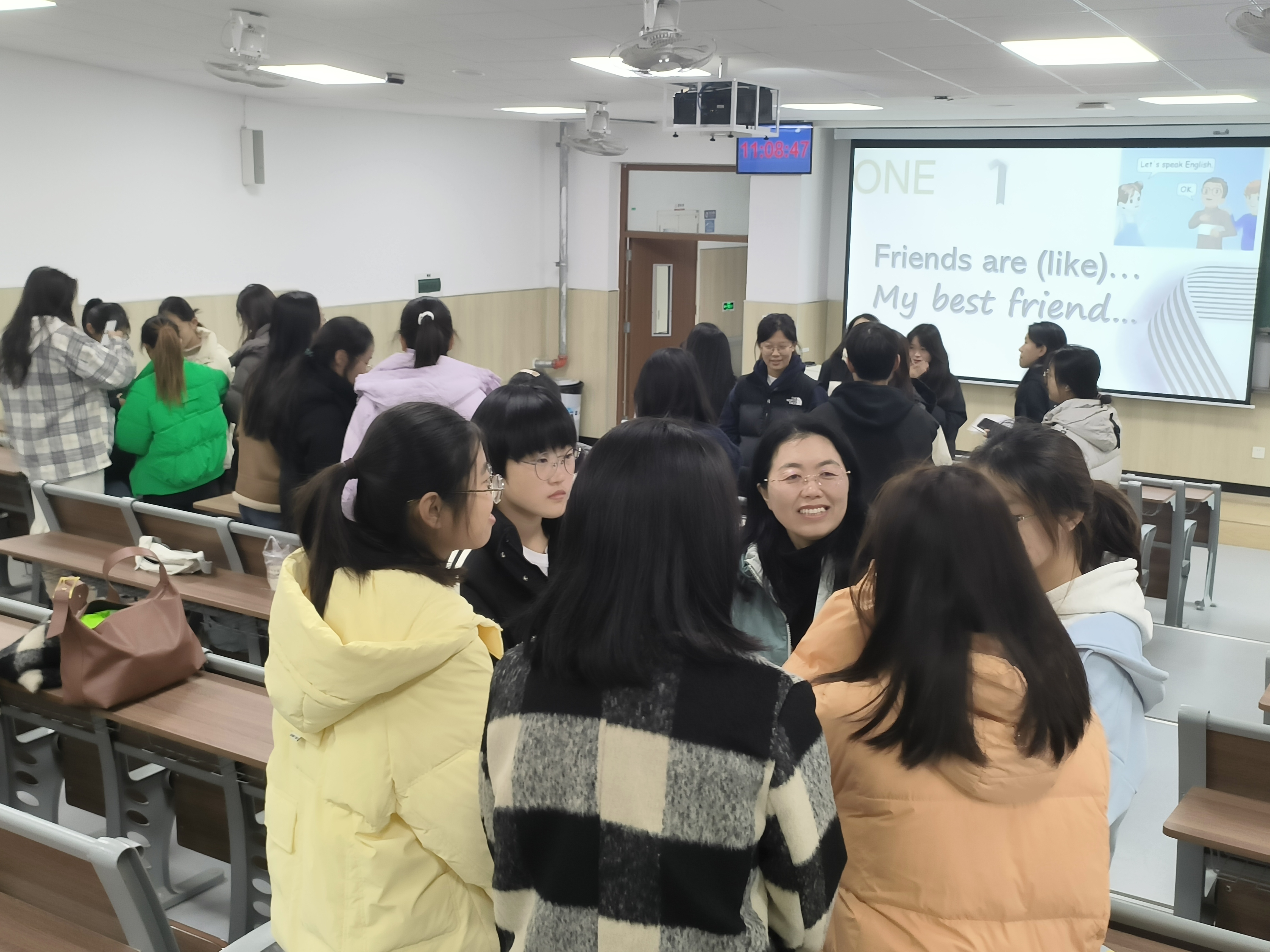 本期英语角活动采用师生合作、小组讨论模式。学生们自由组成若干小组,每组5-6人,就交友、大学计划、未来规划等话题展开讨论,并与现场教师互动交流。交流坦诚真挚,现场气氛热烈融洽,同学们在英语交流中提高了英语口语水平,拓宽了视野,增强了学习英语的兴趣和自信。本期英语角赢得了学生的普遍好评,为参与者留下了难忘的记忆,也为今后更多的英语交流活动奠定了基础。