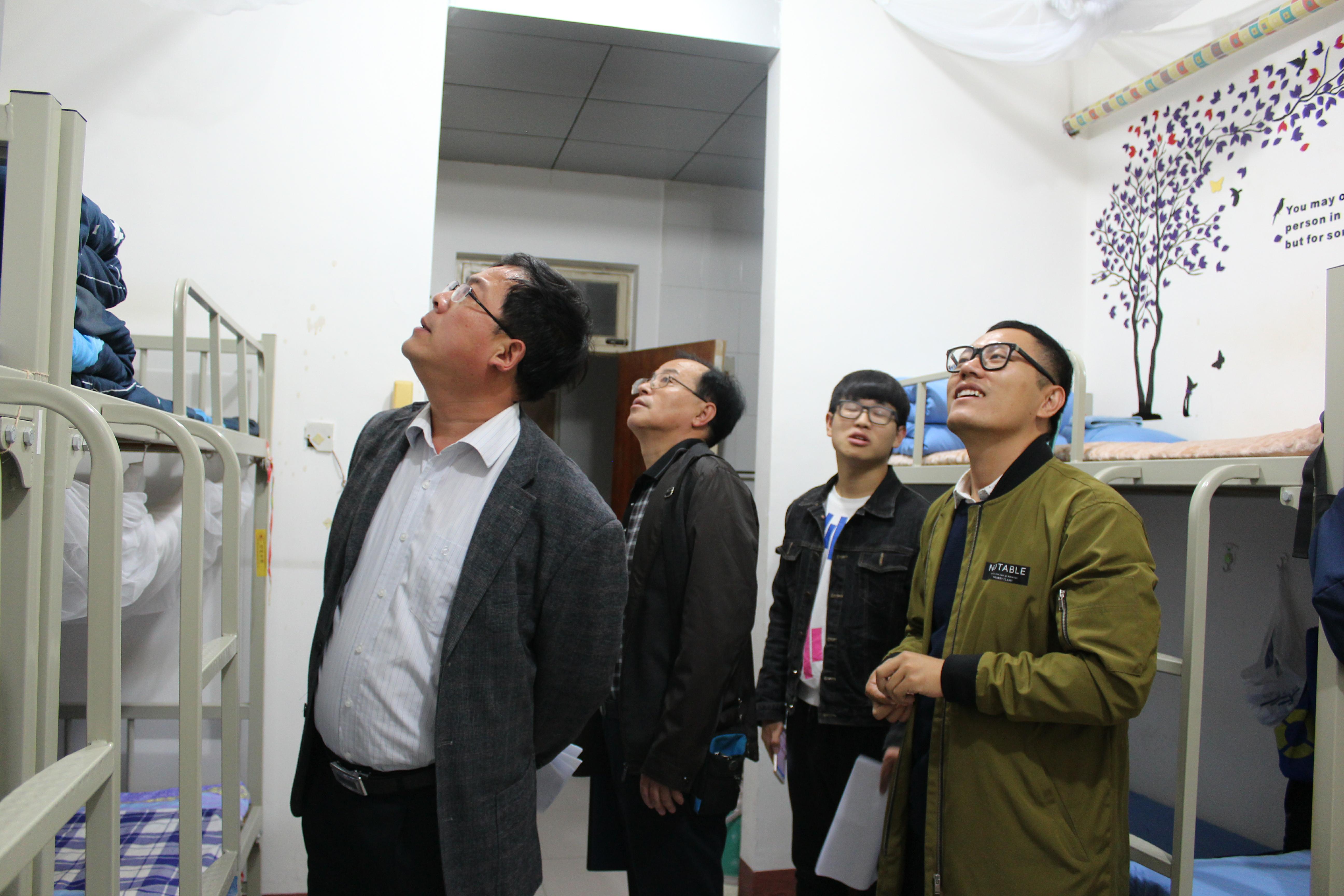 孙世孟对宿舍进行了详细检查,对于宿舍卫生,他提出几点细微要求:做好宿舍通风工作;按照学校标准摆放物品;床下鞋子摆放整齐;门上不准乱贴东西等。他强调道:“同学们要做好宿舍卫生保持工作,营造良好的宿舍环境,培养良好的生活和文明习惯。”纪卫宁要求到,宿舍内部可对宿舍环境进行装饰,尽量用白色或者淡雅墙纸进行修饰;桌子上尽量放置学习用品,不要堆放杂物。王晓雷补充说,要将多余物品摆放在阳台,保持桌面整洁并要求值日生及时清理垃圾。嵇安奕就同学如何打扫好卫生进行现场指导:“同学们要提高宿舍卫生标准,书籍按照统一标准摆放整齐,门窗保持洁净,争创‘我爱我家’优秀宿舍。”
