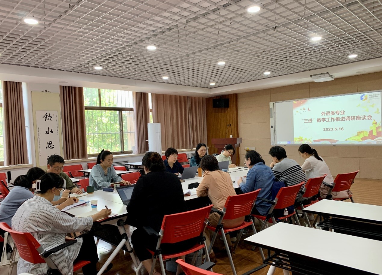 5月16日,外国语学院召开外语类专业“三进”教学工作主题教育专题调研座谈会,深入调研推进外语类专业的“三进”教学工作,进一步提升学院教师为党育人、为国育才的教育意识和教学能力。会议由外国语学院院长纪卫宁主持并主讲,英语系和日语系主任、副主任以及三进课程骨干教师参加会议。
