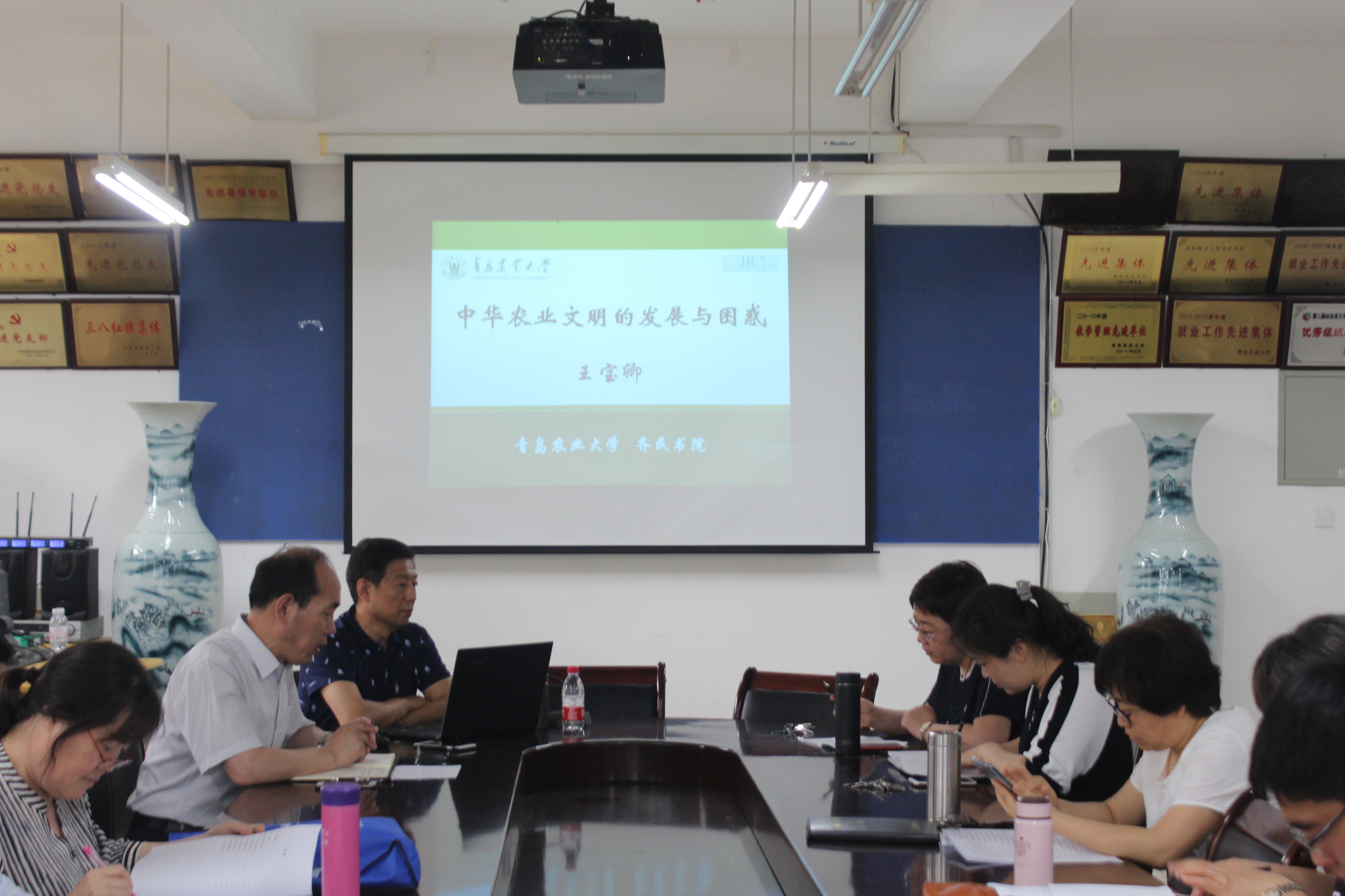 6月13日,青岛农业大学外国语学院邀请齐民书院副院长王宝卿研究馆员在学院会议室作题为“中华农业文明发展和困惑”学术报告。学院党政领导出席,全体教职工参加,报告会由党委书记王仁高主持。